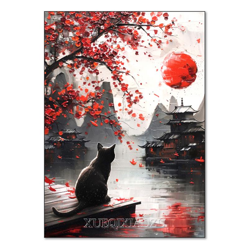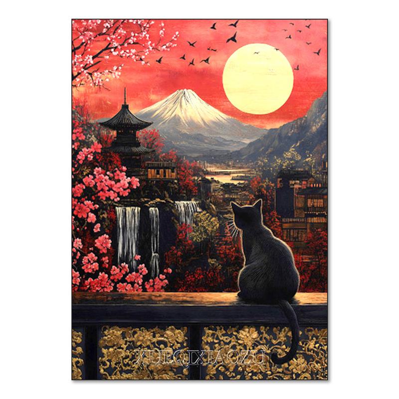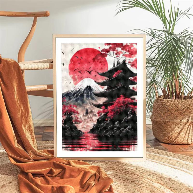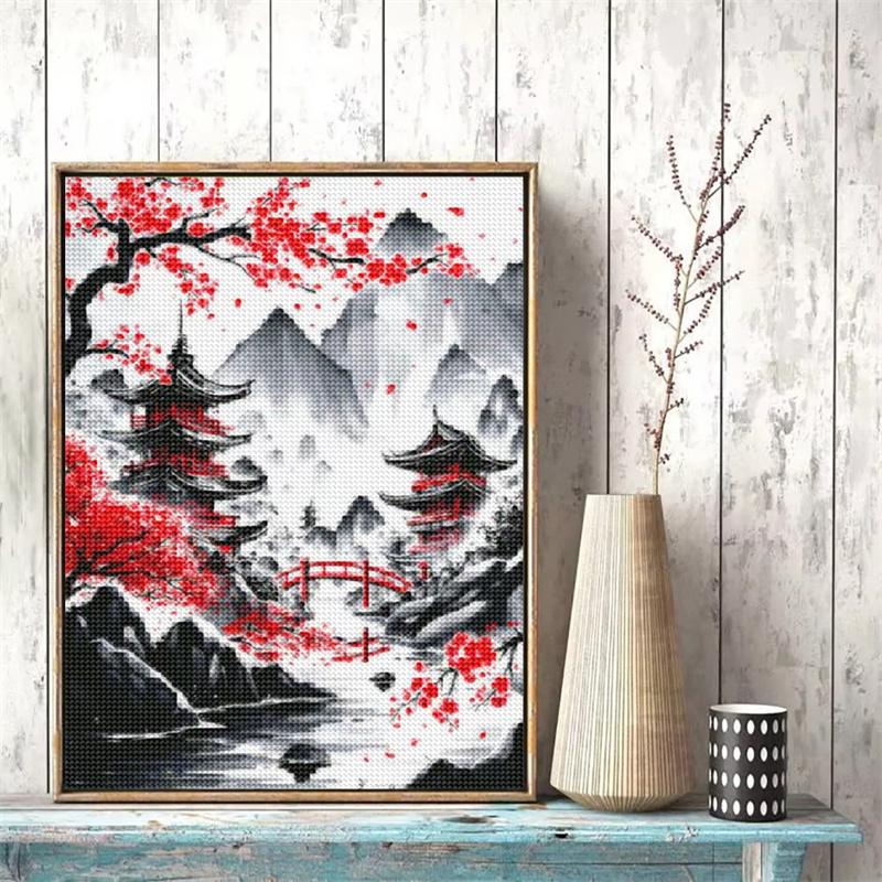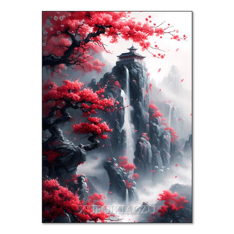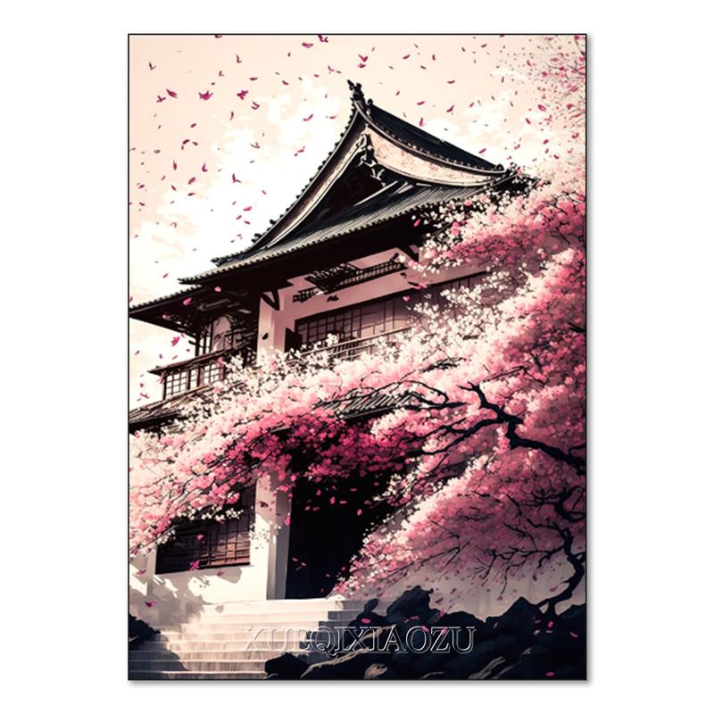 DIY Алмазная картина Японский природный пейзаж Полная алмазная мозаика Стразы Вышивка Сакура Искусство Вышивка крестом Домашний декор