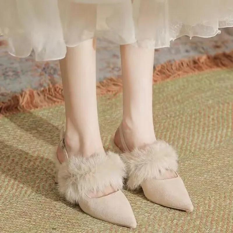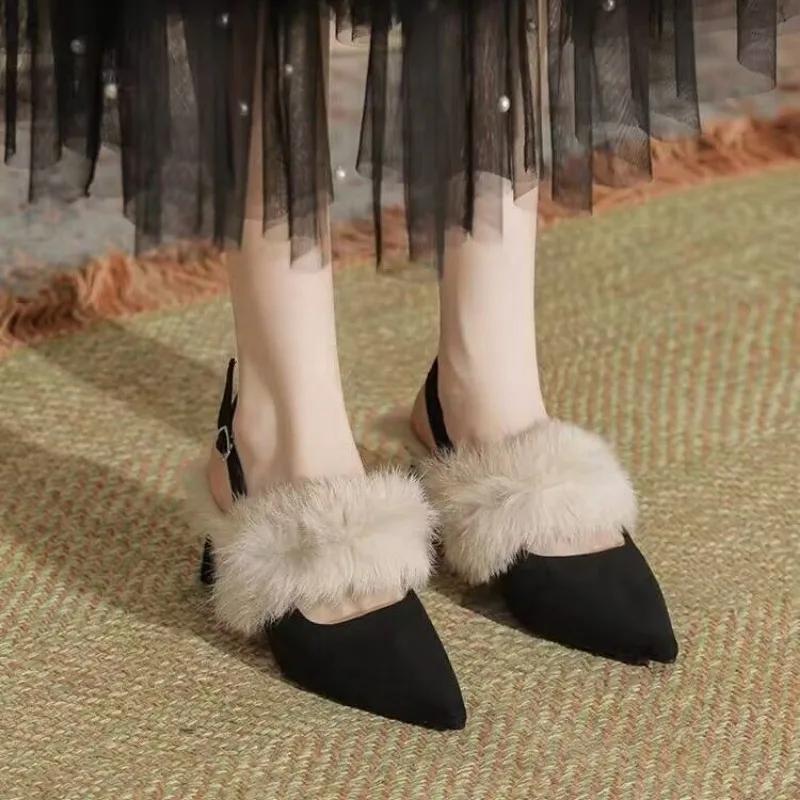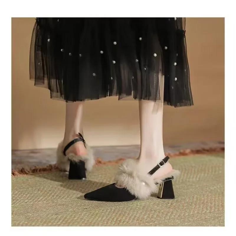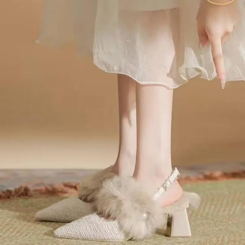 Новые весенние и осенние туфли на высоком каблуке с острым носком, модные, с пряжкой-иглой, с жемчугом, с мелким носком, повседневные, толстые, плюшевые, женские сандалии