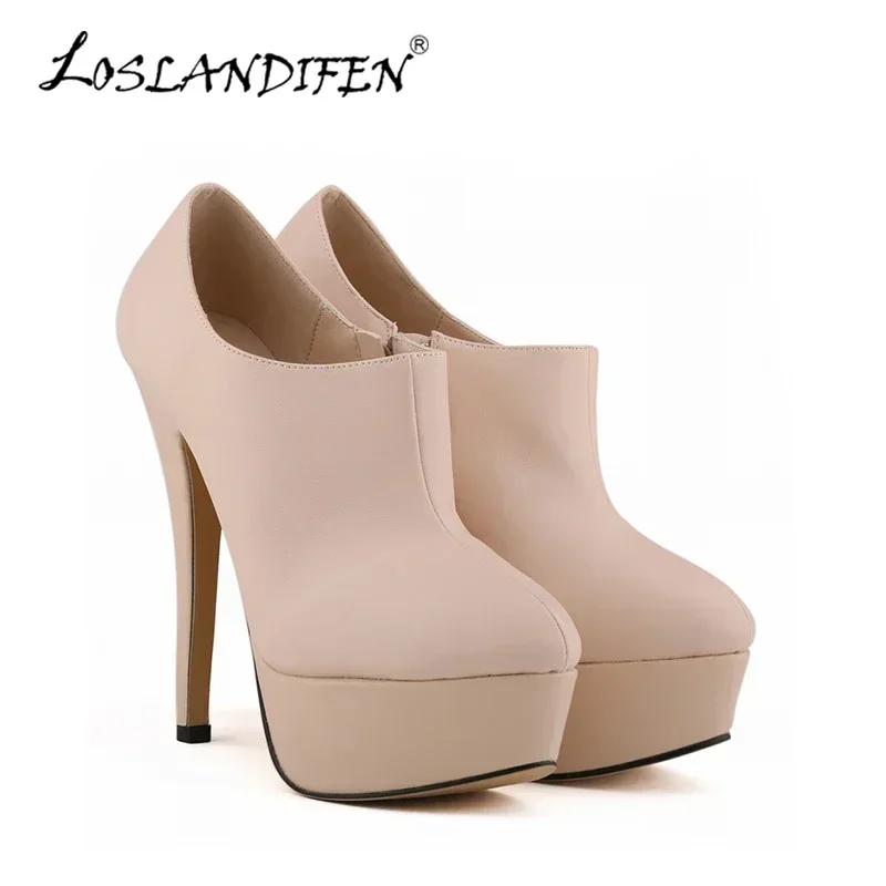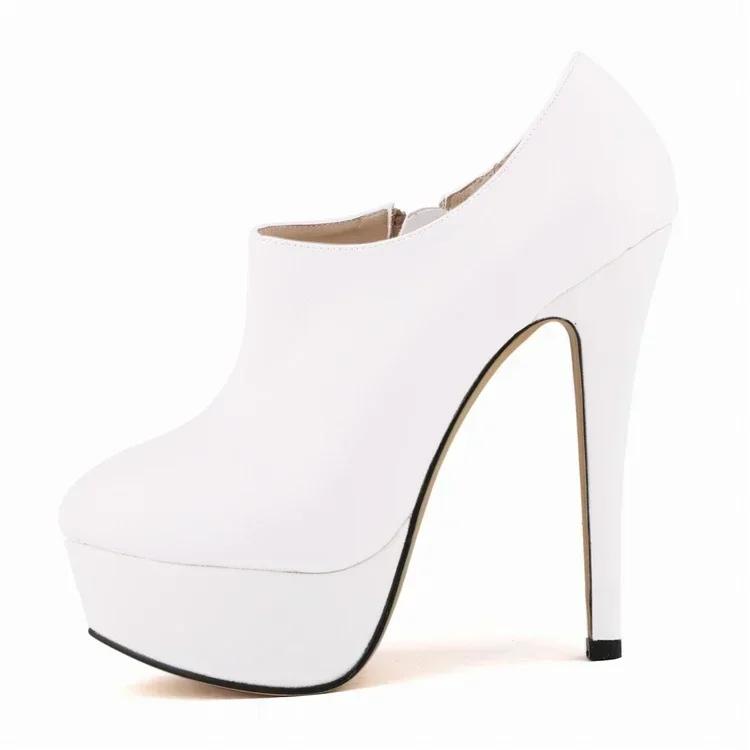 Осенне-зимние женские сапоги, модные сексуальные туфли на шпильках 14 см с круглым носком, высокие каблуки, женские туфли-лодочки на платформе, кожаные туфли для вечеринок, большой размер