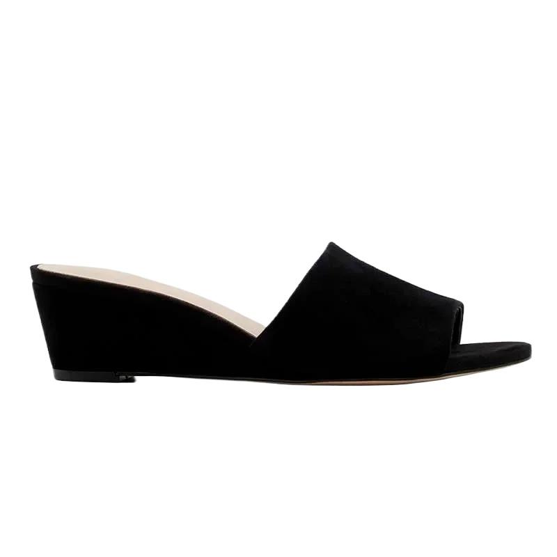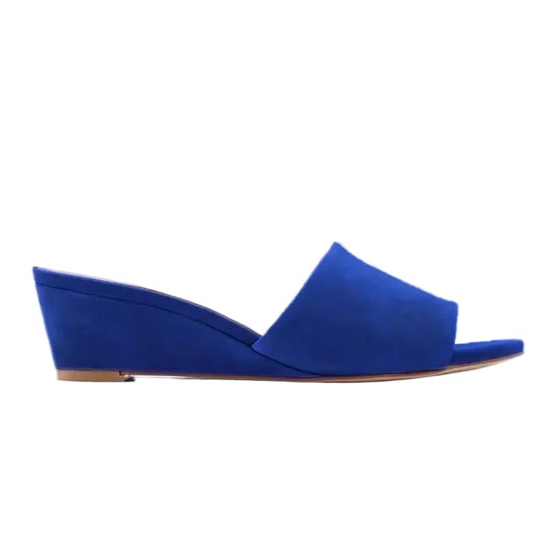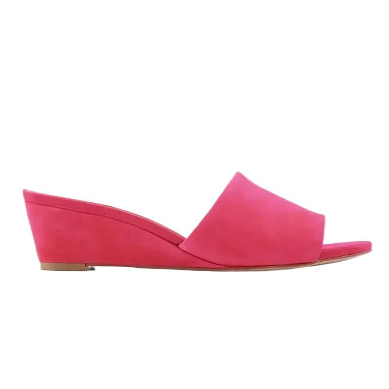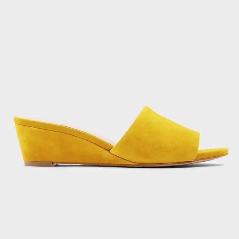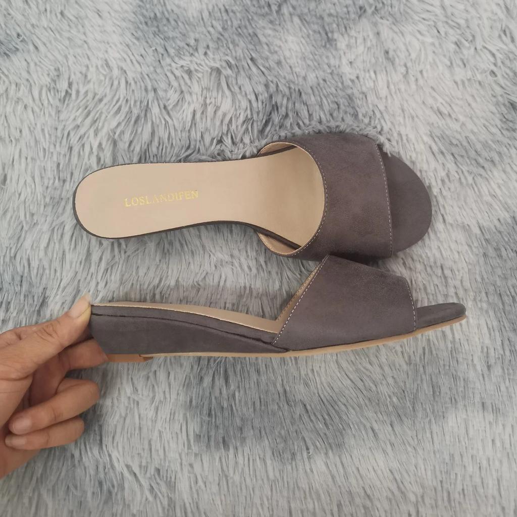 Женские тапочки Элегантные летние 3 см Бархатные мюли Сандалии на танкетке Тапочки с открытым носком Высокий каблук Повседневная обувь для платья Женская обувь Большой размер 42