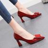 Туфли-лодочки на толстой платформе, женские туфли с острым носком, весна-осень, женские туфли на высоком каблуке с пряжкой на щиколотке и толстым каблуком