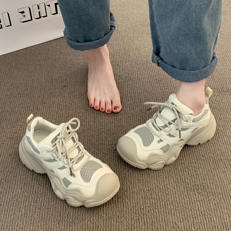 Показывающие маленькую ножку и увеличивающие рост, кроссовки на толстой подошве из сетки, женские, новый тренд кэжуал моды весна-осень 2024