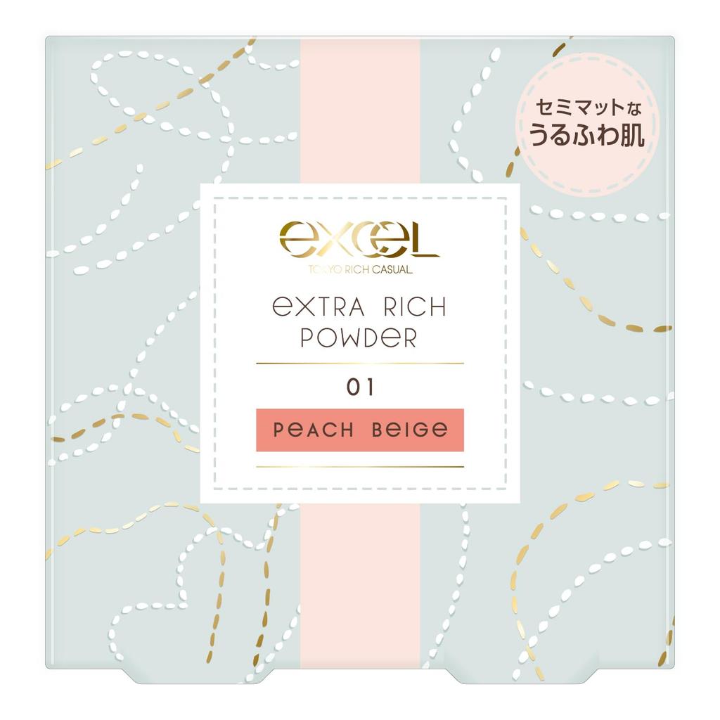 excel Пудра Экстра Рич 01 Розовый Жемчуг в Яркой и Нежной Матовой Коже Пудра для Лица Эластичная Сетка '24 (Персиково-бежевый)