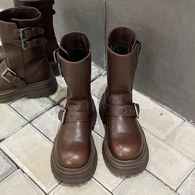 Женские ботинки Martin на толстой подошве и каблуке в британском стиле, новые летние коричневые универсальные высокие короткие ботинки Maillard 2025 года — купить товар онлайн с бесплатной доставкой до всему миру!