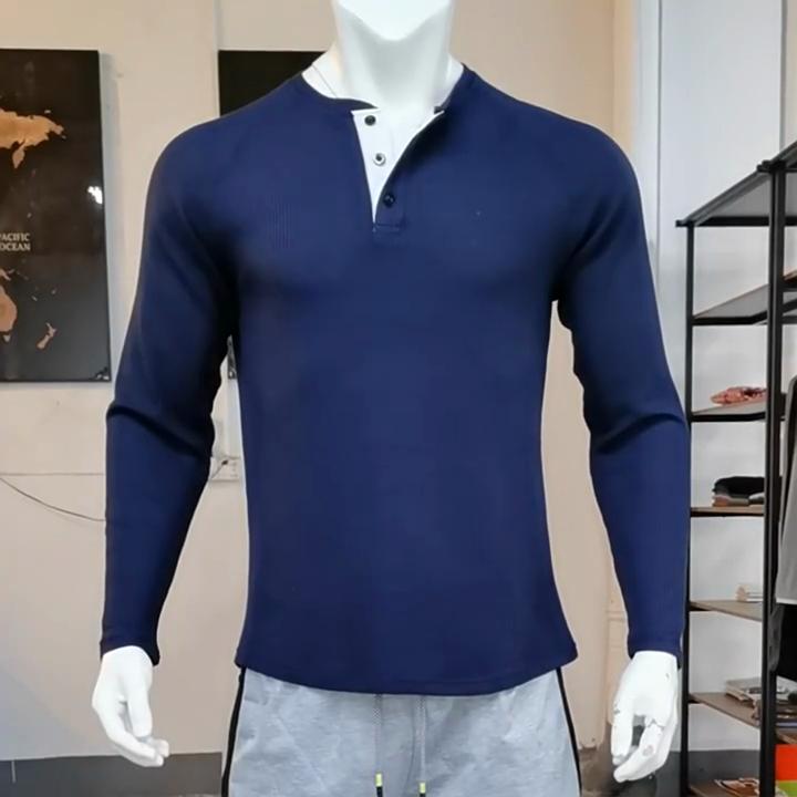 Fashion Waffle T Shirt Men Autumn New Slim Fit Long Sleeve Henley Tshirt Men Streetwear Casual Solid Color T-Shirt US SIZE — купить товар онлайн с бесплатной доставкой до всему миру!
