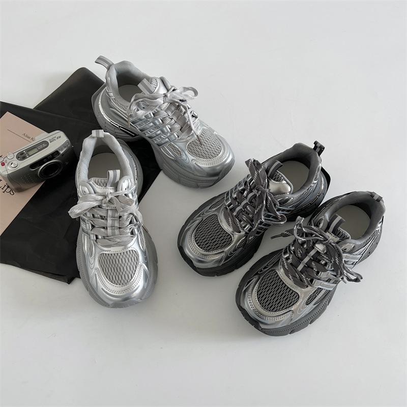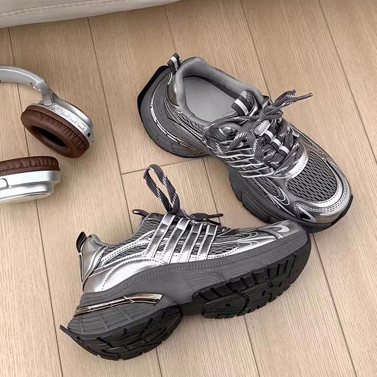Ретро серебристые туфли для папы на маленькой платформе, женская обувь 2025 года, новая весна и осень, легкая, увеличивающая рост, универсальная спортивная обувь