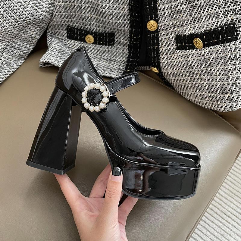 Туфли женские кожаные на высоком каблуке в стиле ретро 2025 года, универсальные туфли Мэри Джейн с неглубоким горлом и круглым носком