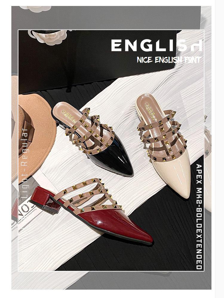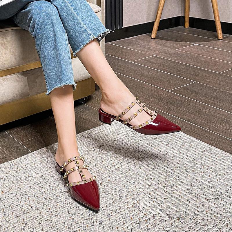 2025 весна и лето новые заклепки сумка головные тапочки толстый каблук верхняя одежда мода ива лакированная кожа острый средний каблук женские туфли