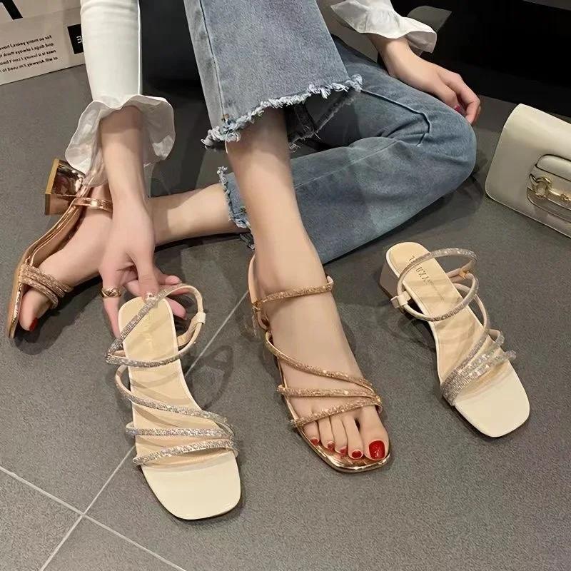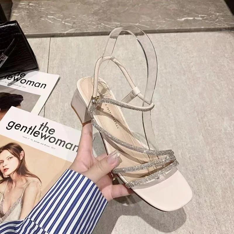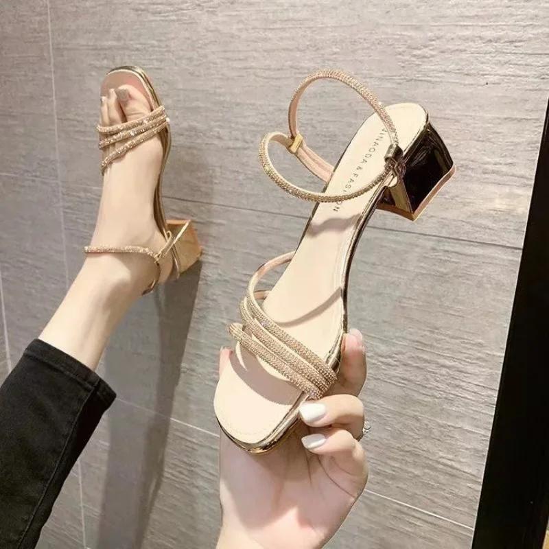 Женские сандалии летние новые элегантные туфли на высоком каблуке для отдыха на открытом воздухе модные повседневные туфли со стразами с открытым носком Caligae Large женские туфли