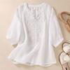 Новая футболка однотонная литературная ретро вышивка свободная с V-образным вырезом пуловер топ