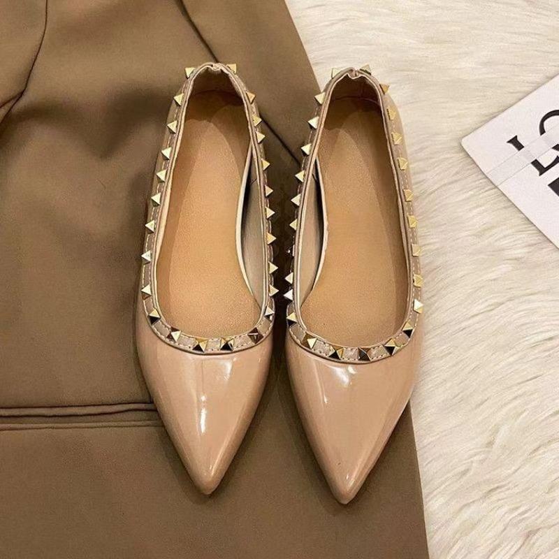 Женские туфли в британско-американском стиле для повседневного показа мод с заклепками из лакированной кожи в стиле пэчворк и матовыми балетками с принтом 45