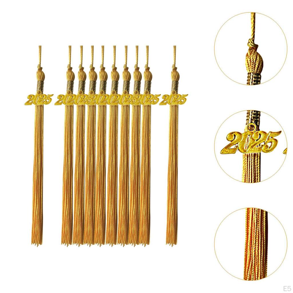- 【Пакет ценностей】: В комплект входят 10 выпускных кисточек с золотыми подвесками 2025 года, общая длина каждой — 15,75 дюймов/40 см.. Эти легкие кисточки можно дарить друзьям и одноклассникам.