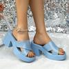 Летние новые модные туфли на высоком каблуке, женские повседневные туфли на толстом каблуке, женские уличные тапочки, обувь Zapatos De Mujer