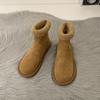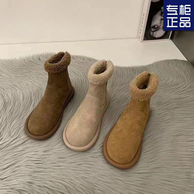 Douyin популярные женские зимние ботинки 2025 года, новые модные бархатные женские туфли, очень толстые и тонкие, короткие ботинки на плоской подошве