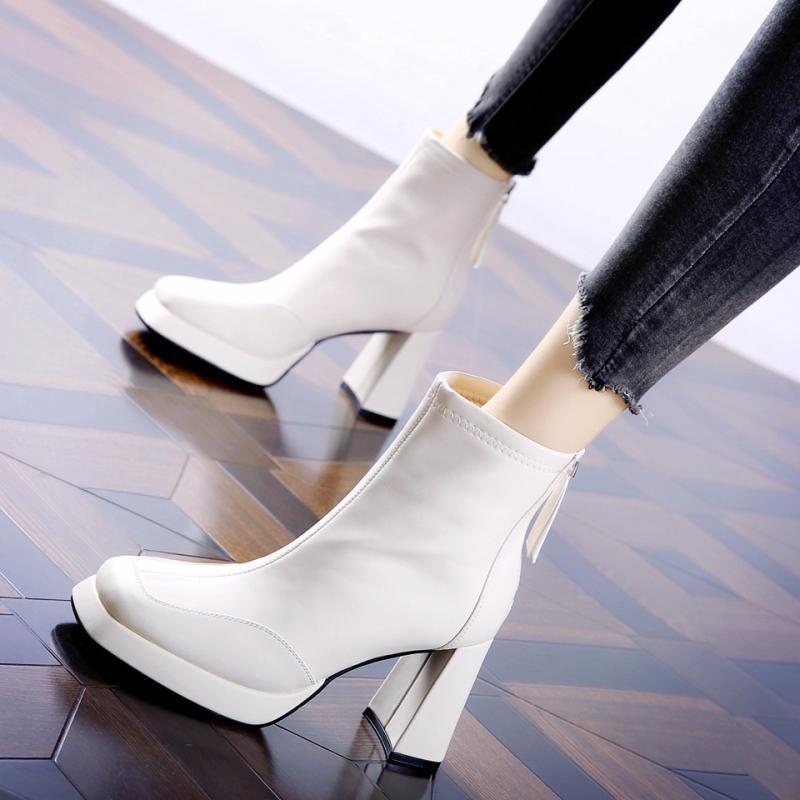 Корейская версия водонепроницаемые настольные квадратные носки ботильоны на высоком каблуке 2024 осень и зима новые нескользящие на толстом каблуке короткие ботинки темпераментные ботинки Мартин — купить товар онлайн с бесплатной доставкой до всему миру!