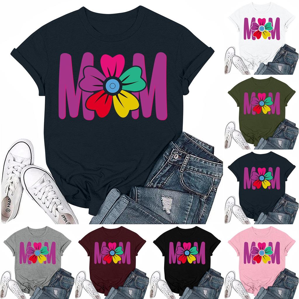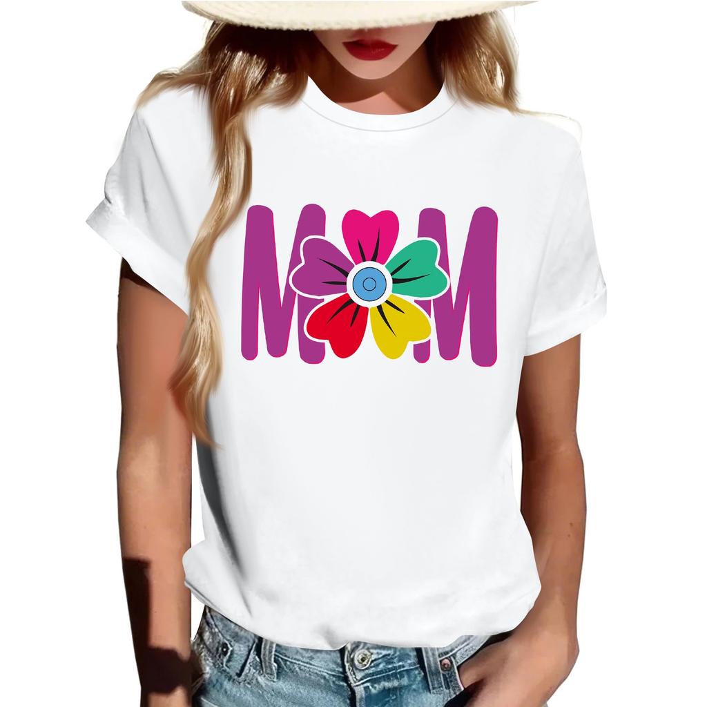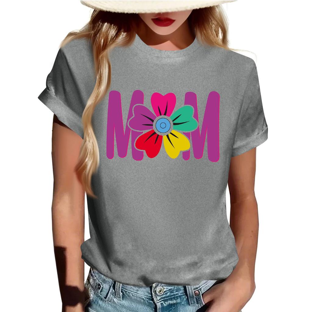 Взрослые Повседневные Ежедневные Круглый вырез с принтом Короткие рукава Футболка Топ с буквами
