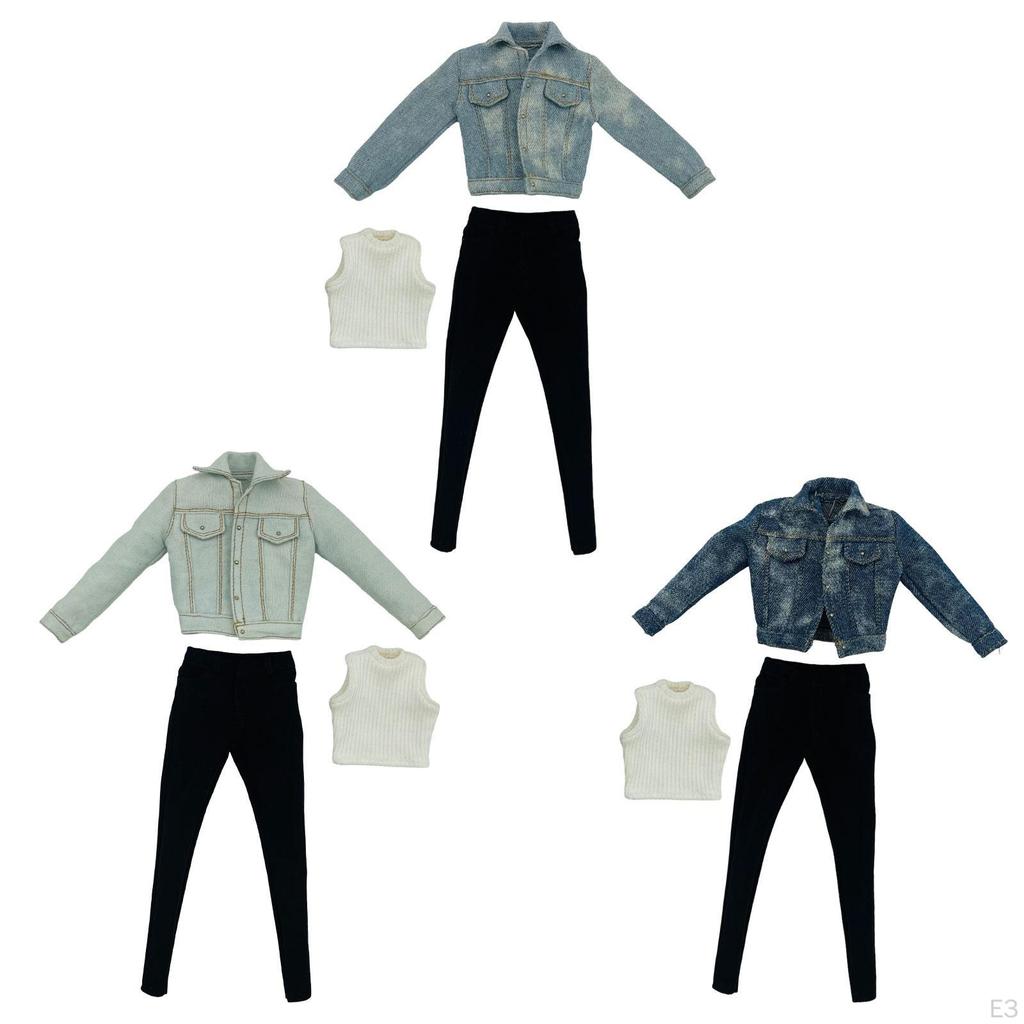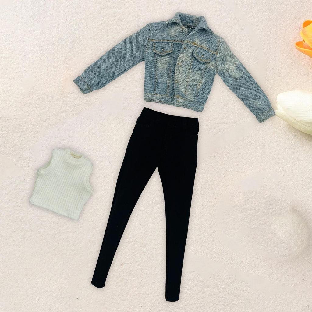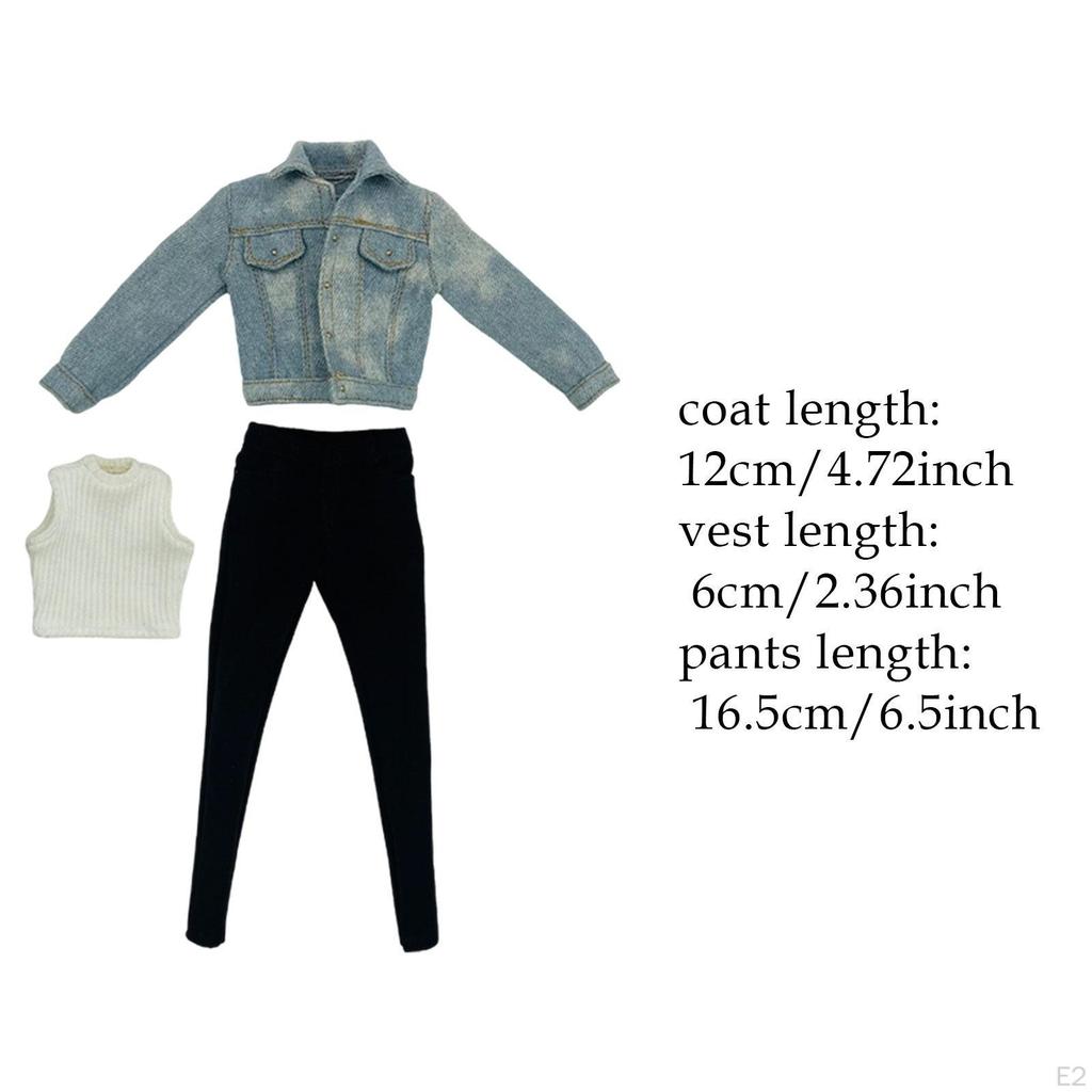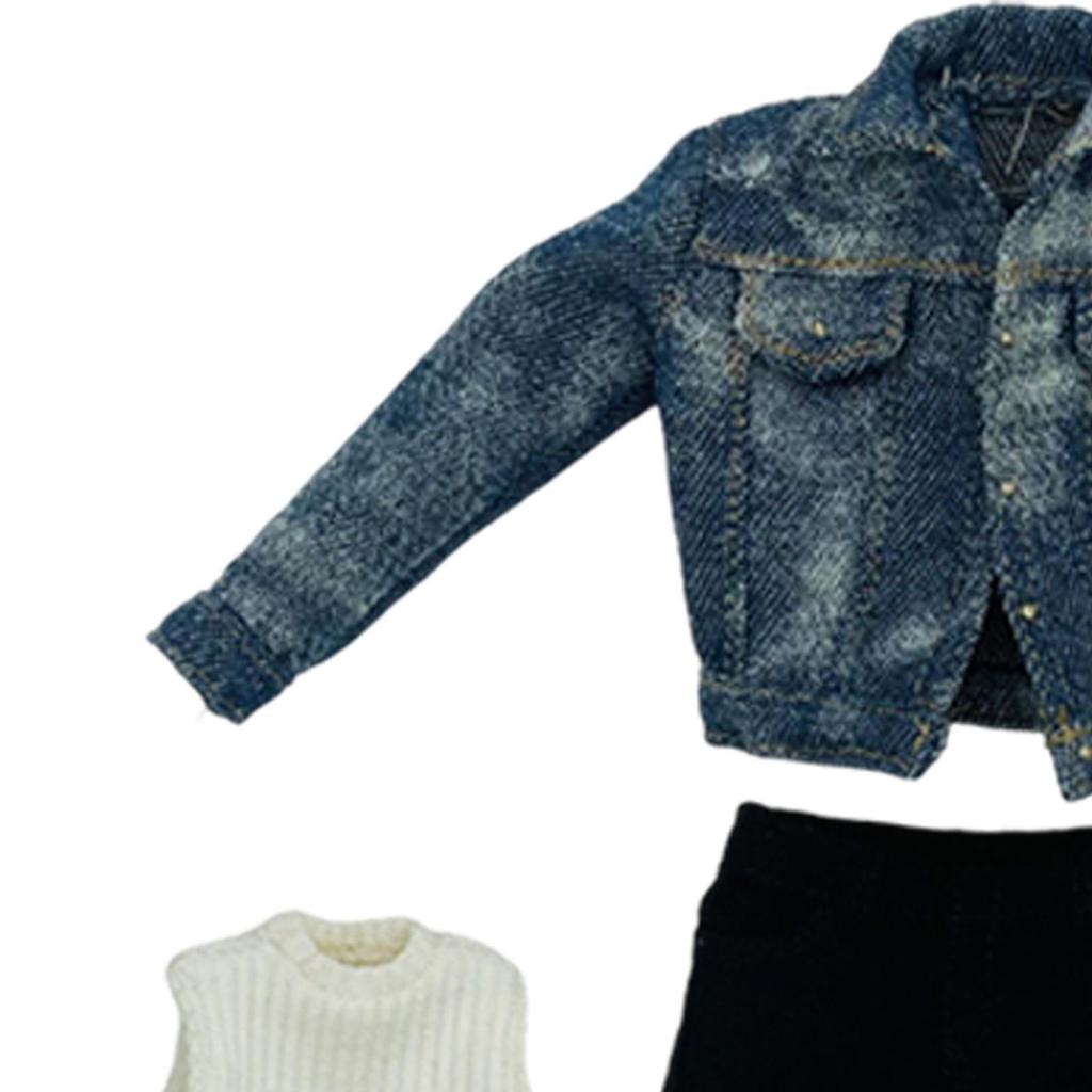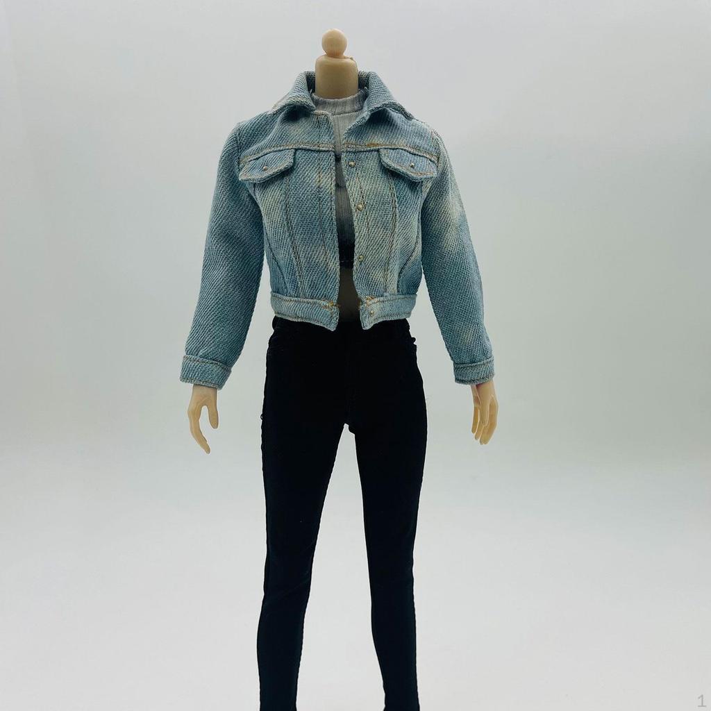 1: 6 Женская джинсовая куртка Langarm Denim Button Down содержит брюки и жилет для 12-дюймового масштаба