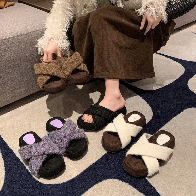 Тапочки Mao Mao женская верхняя одежда 2024 осень и зима новая корейская версия модные и удобные толстая подошва модные однословные котто — купить товар онлайн с бесплатной доставкой до всему миру!