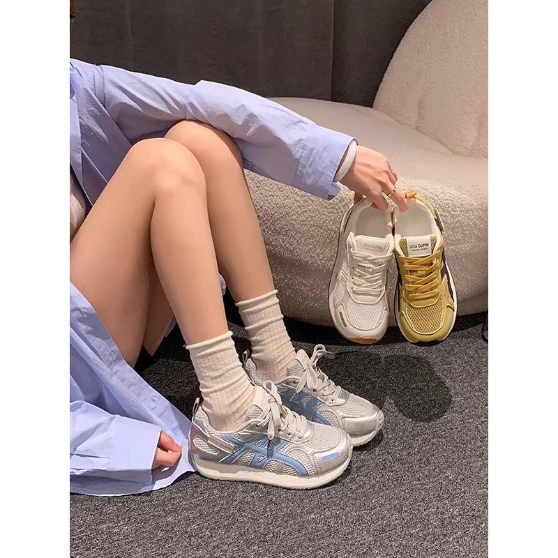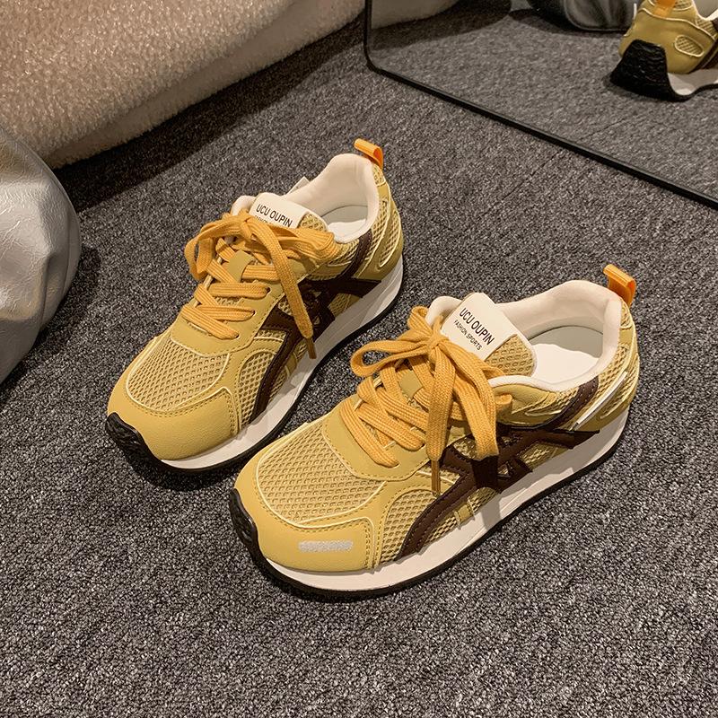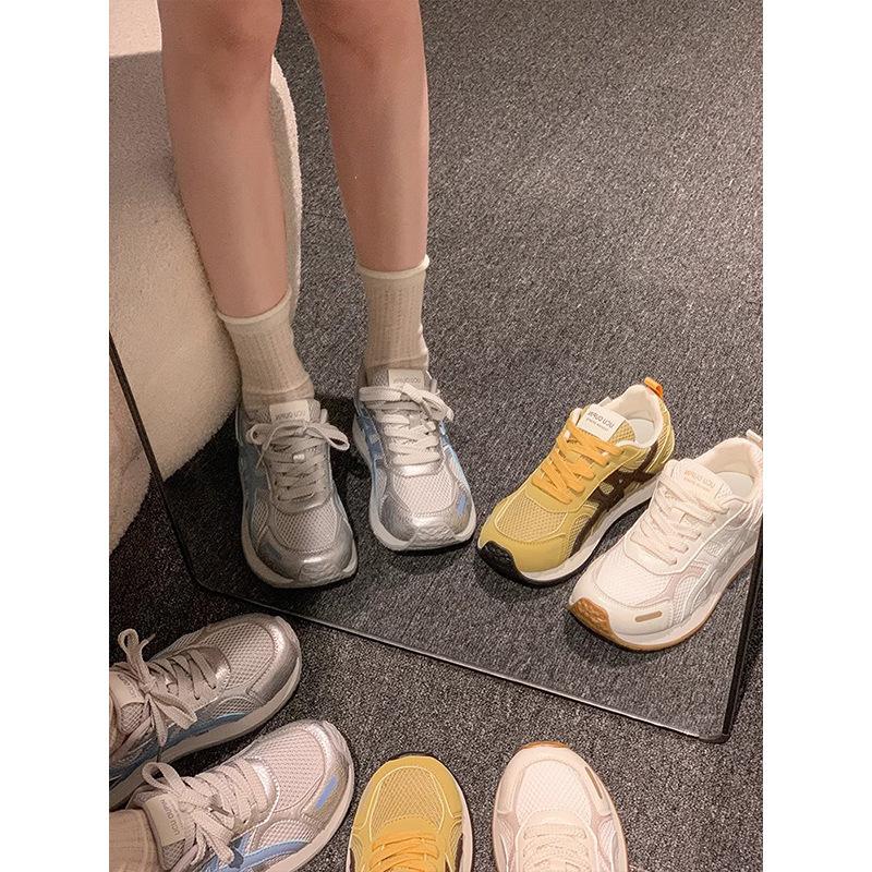 Кроссовки Forrest Gump в стиле ретро с цветовым сочетанием на платформе женские 2025 новые сетчатые дышащие и универсальные легкие повседневные спортивные кроссовки для бега