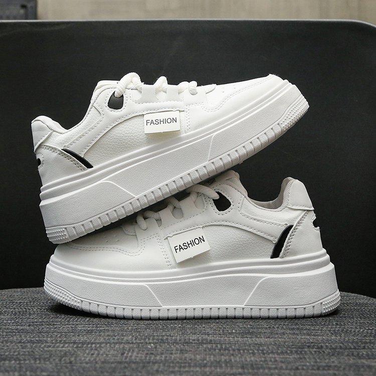 Маленькие белые туфли женские туфли 2024 весна новые универсальные на толстой подошве увеличивающие рост повседневные туфли женские кожаные спортивные туфли для скейтборда