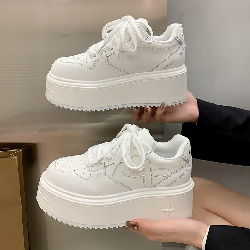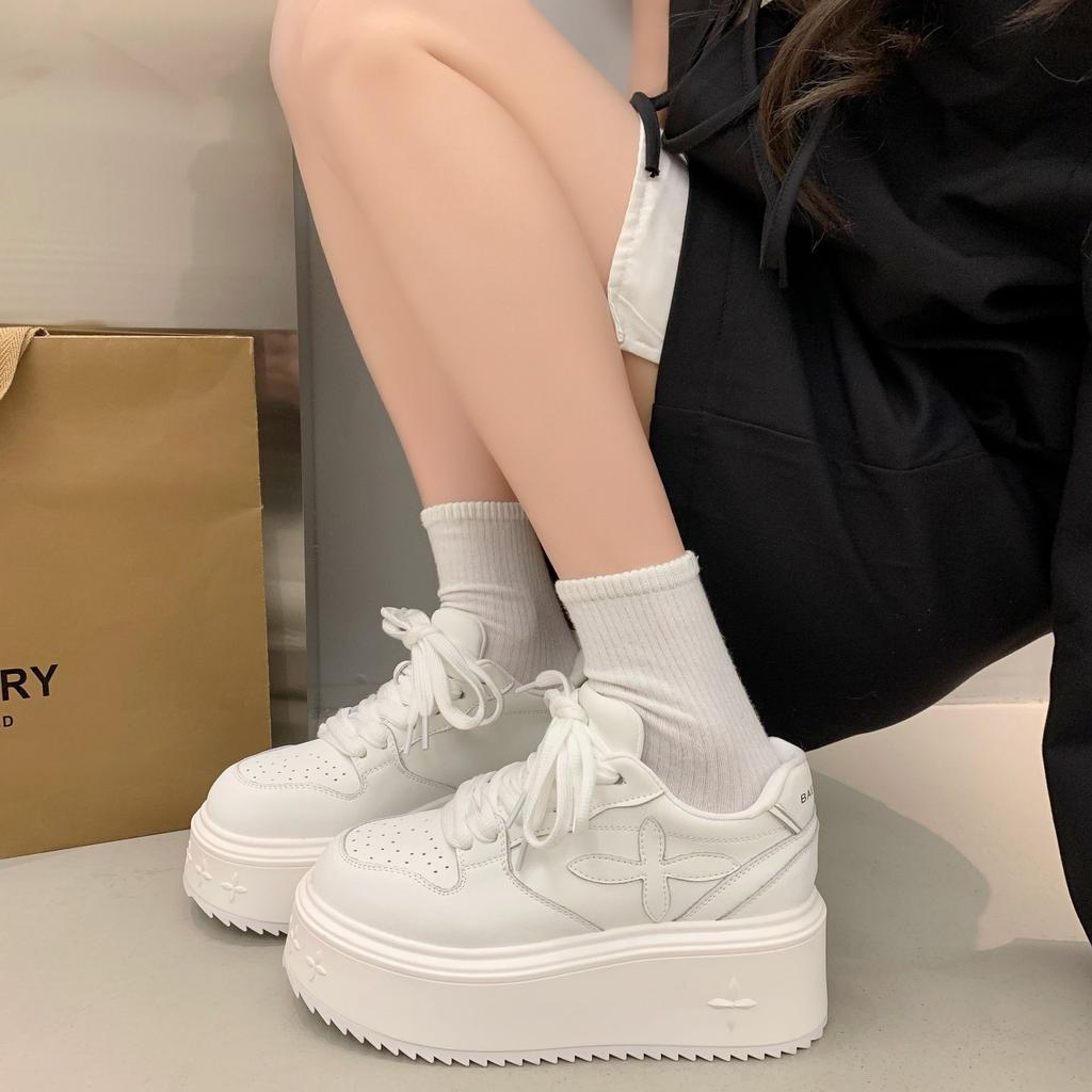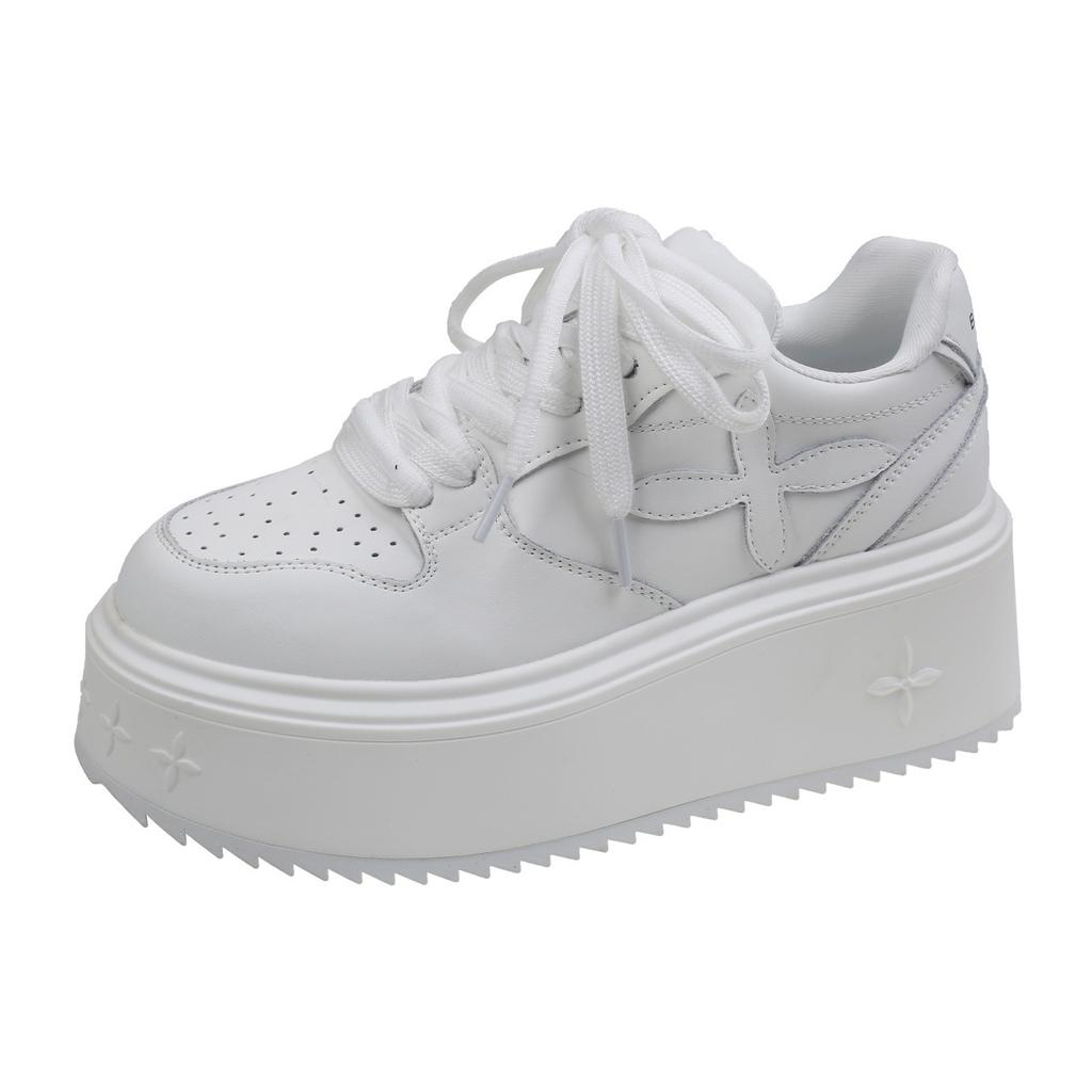 Туфли на платформе белые женские 2024 весна новые универсальные повседневные туфли с крестиком и цветком кексы спортивные туфли с увеличенным голенищем
