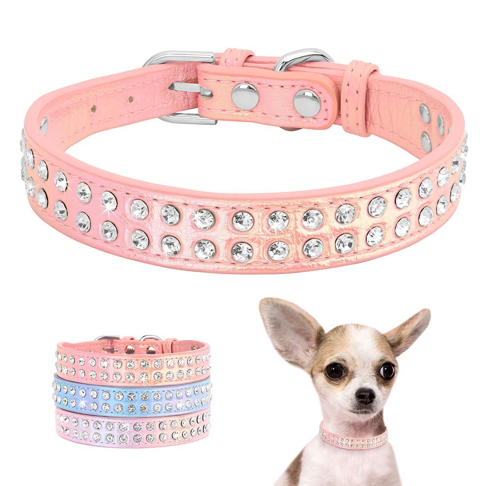 Ошейник для маленьких собак с кристаллами, кожаный ошейник со стразами для домашних собак, мягкий ошейник для щенков и кошек, регулируемый для маленьких собак, чихуахуа