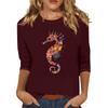 Женская мода повседневная три четверти рукава гиппокамп печать круглый вырез пуловер топ