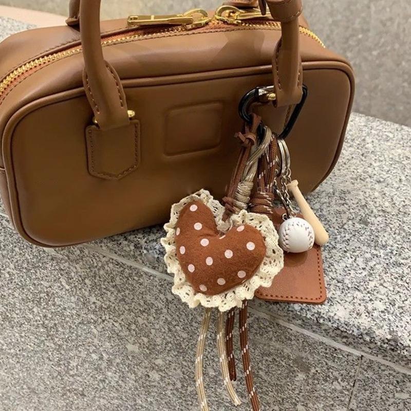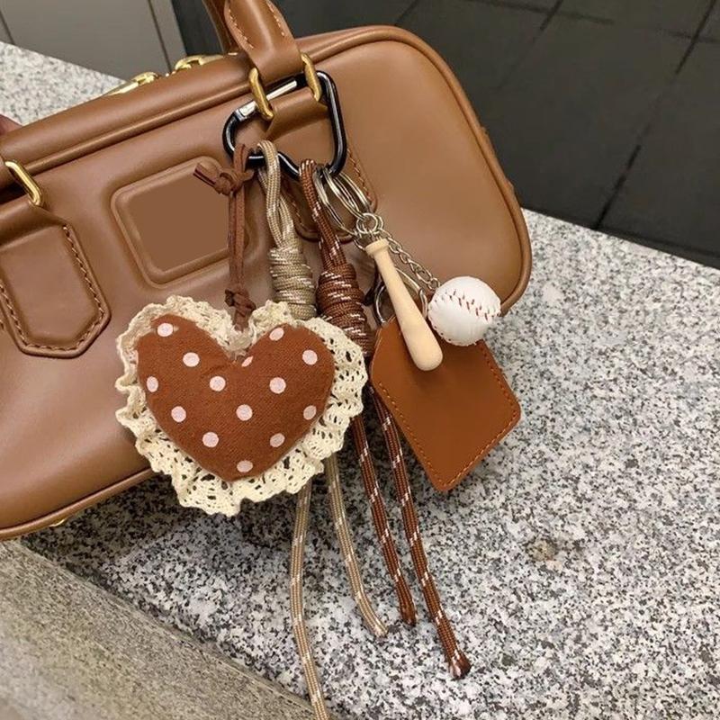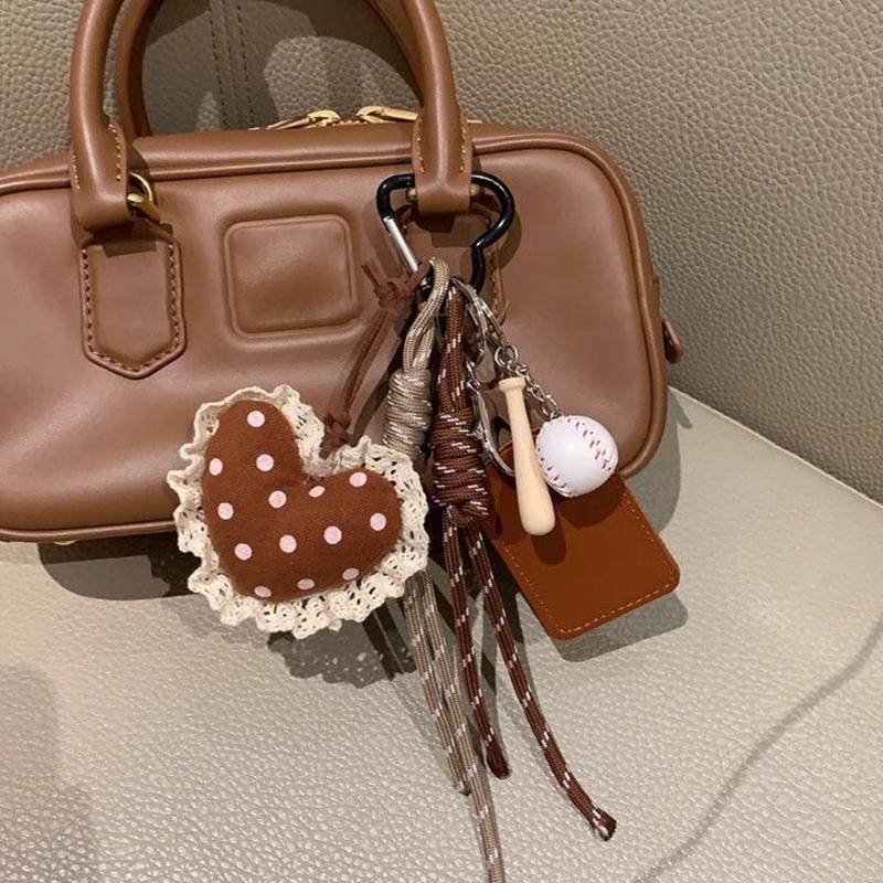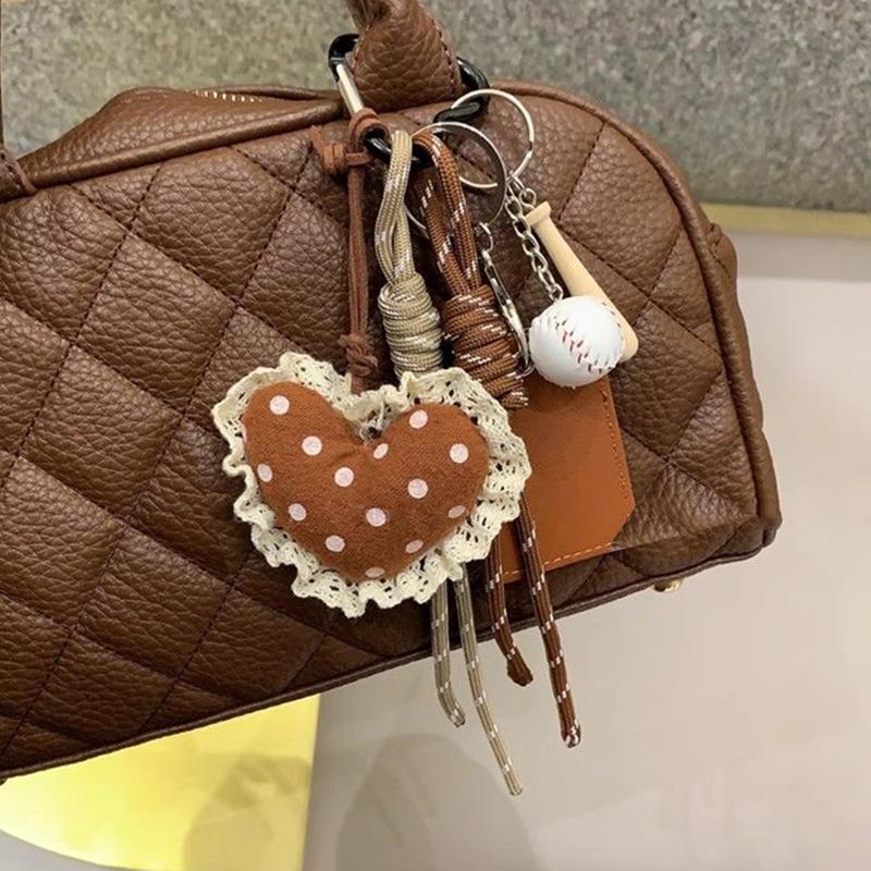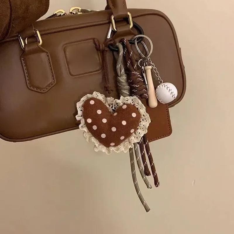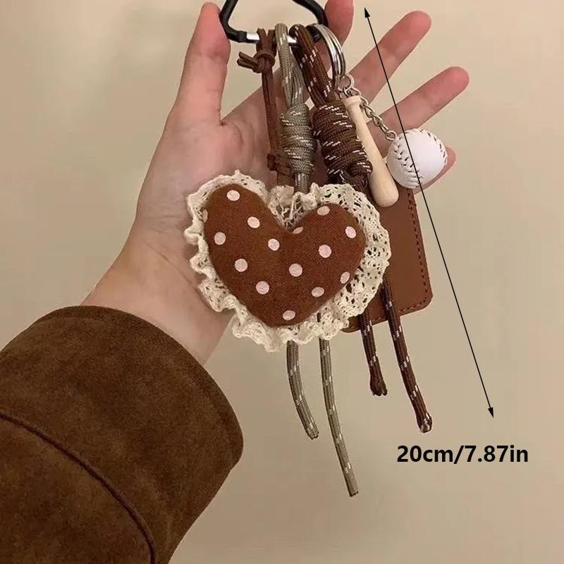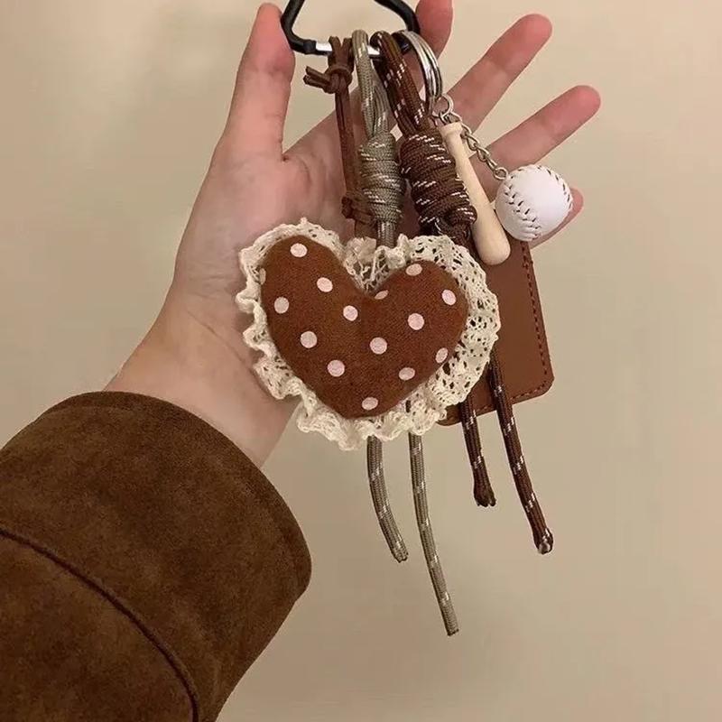 Yogodlns Пушистая плюшевая подвеска в виде сердца для сумки, ручная работа, плетеная нейлоновая веревка, кружево, бейсбольная сумка, подвеска