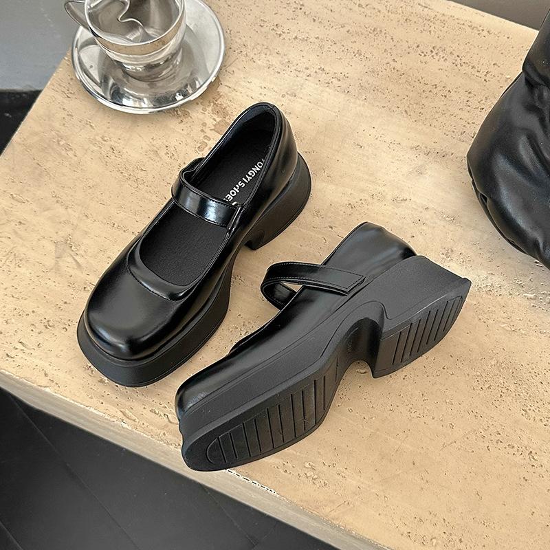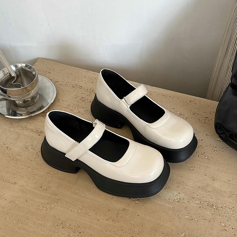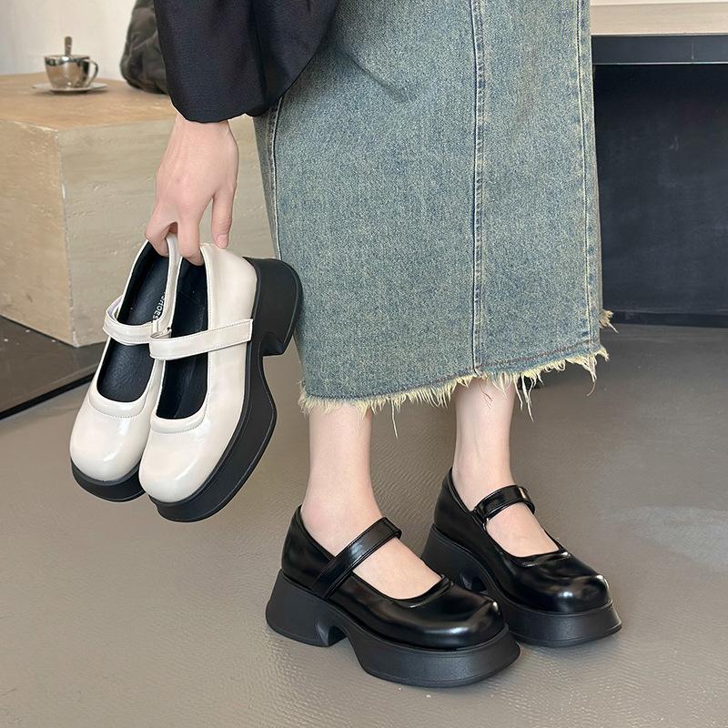 Ретро французские однотонные туфли Мэри Джейн на толстой подошве для женской коллекции весна 2025, новые, универсальные, с темпераментом, с открытым вырезом, с круглым носком, одинарные туфли, тренд
