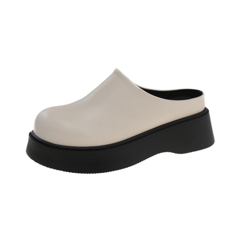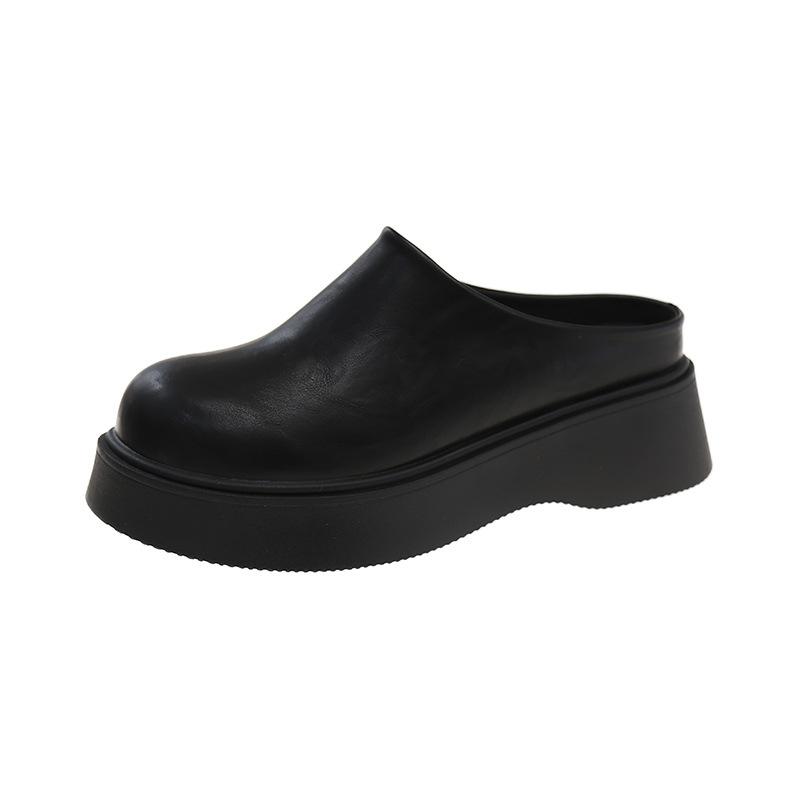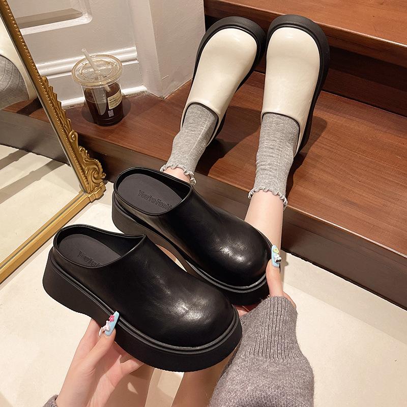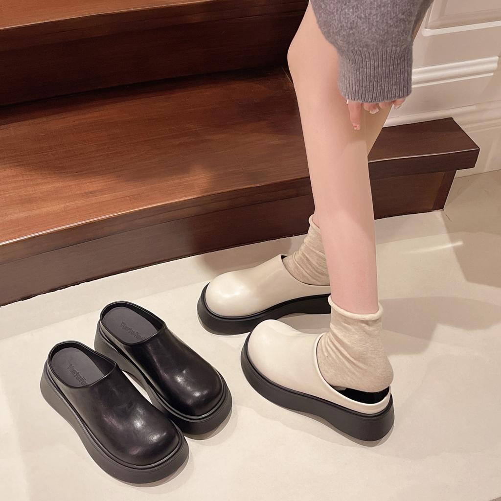 Корейская версия женских полутапочек с закрытым носком для улицы, новинка весны и осени 2025 года, ленивые мюли на толстой подошве, увеличивающие рост, короткие музыкальные грехи