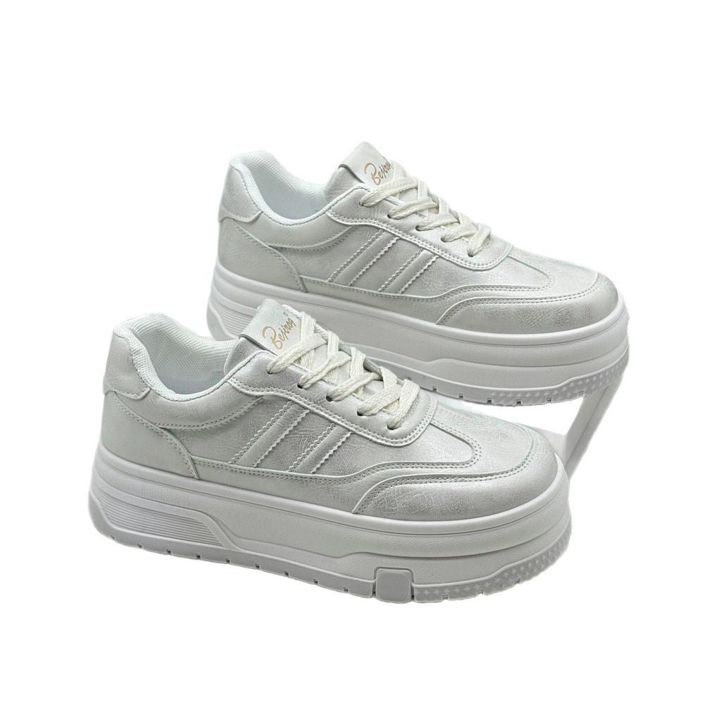 Европейские маленькие белые туфли женские кожаные толстые подошвы показывают тело новые популярные универсальные увеличивающие рост маленькие спортивные туфли для кексов