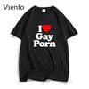 Смешные мужские футболки с надписью «I Love Gay Porn» Повседневная летняя футболка ЛГБТ Унисекс с коротким рукавом Уличная мужская футболка с круглым вырезом
