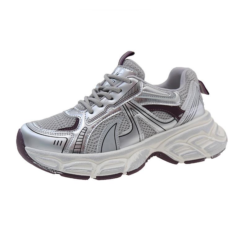 Mesh breathable daddy shoes women's spring 2025 new platform soled casual sneakers running women's shoes leather small white shoes