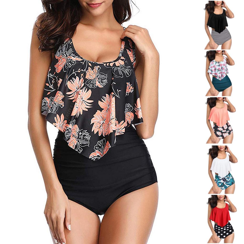 Женский сексуальный купальник-бикини с высокой талией, принтом в виде оборки, поясом для живота и подушечками для груди, утягивающий раздельный купальник — купить товар онлайн с бесплатной доставкой до всему миру!