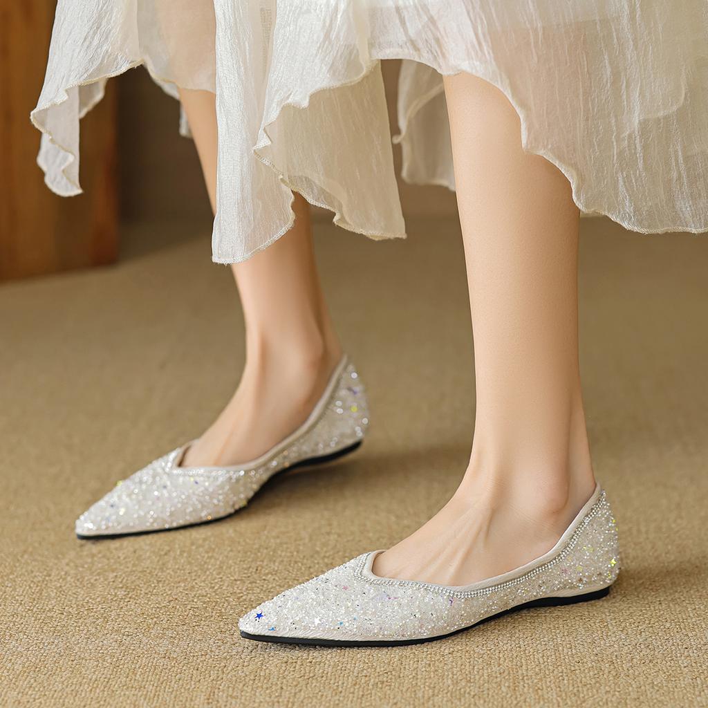 Weiwei girl 5933-12 остроносые одинарные туфли женские на плоской подошве с одной педалью со стразами шапочки туфли в стиле феи