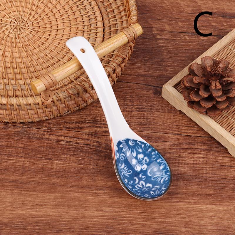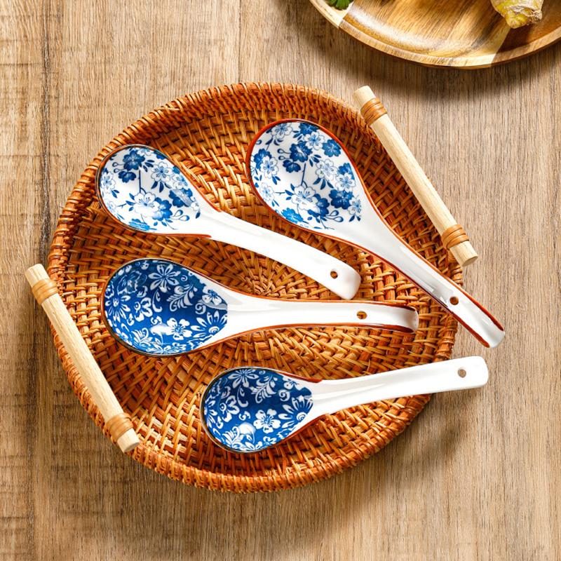 1 шт., сине-белая фарфоровая суповая ложка, бытовая посуда, ретро-японский стиль, керамические суповые ложки для домашнего ресторана