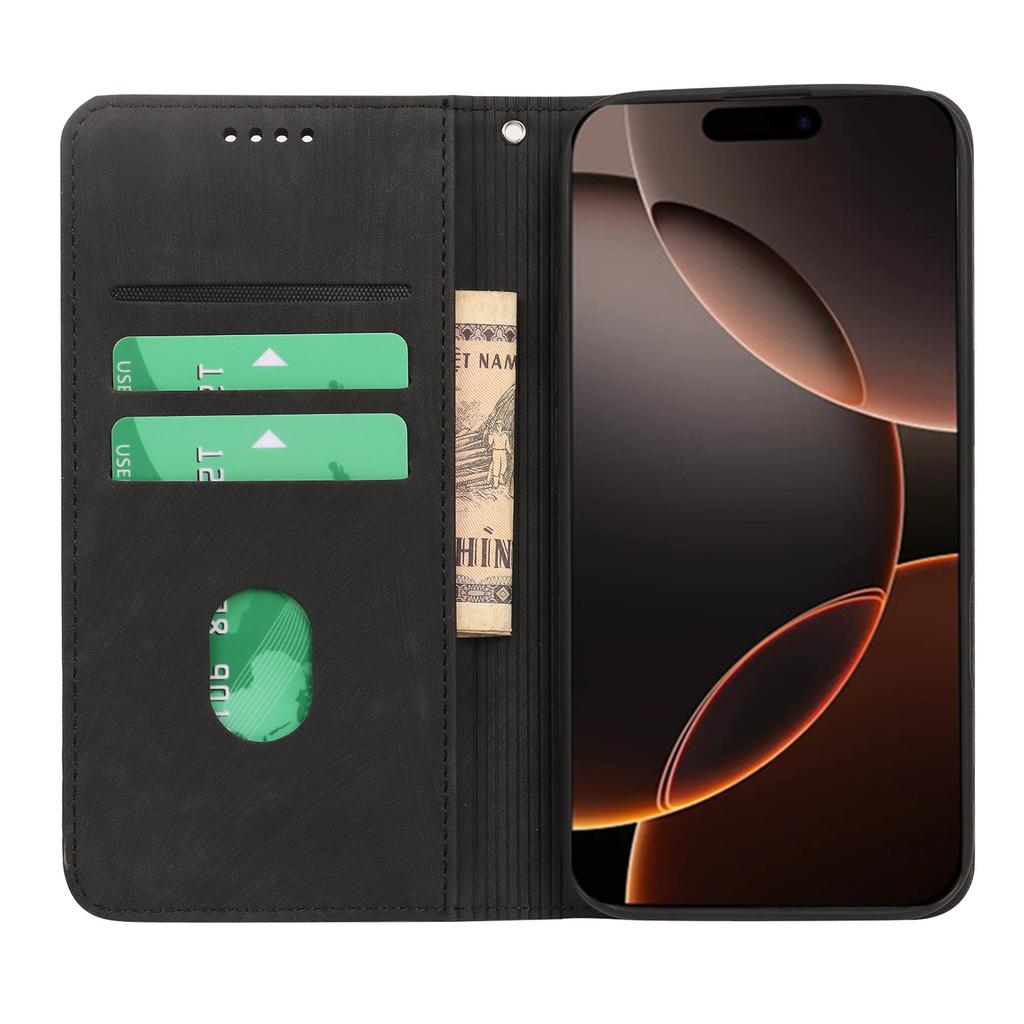 Чехол для iPhone 16 Pro Max Сильный магнитный кожаный кошелек Чехол для телефона с полосатой текстурой