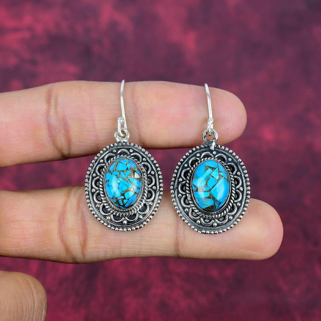 Серьги ручной работы из голубого медно-бирюзового драгоценного камня, серьги из цельного серебра 925 пробы, старинные ювелирные изделия, для подарка на помолвку