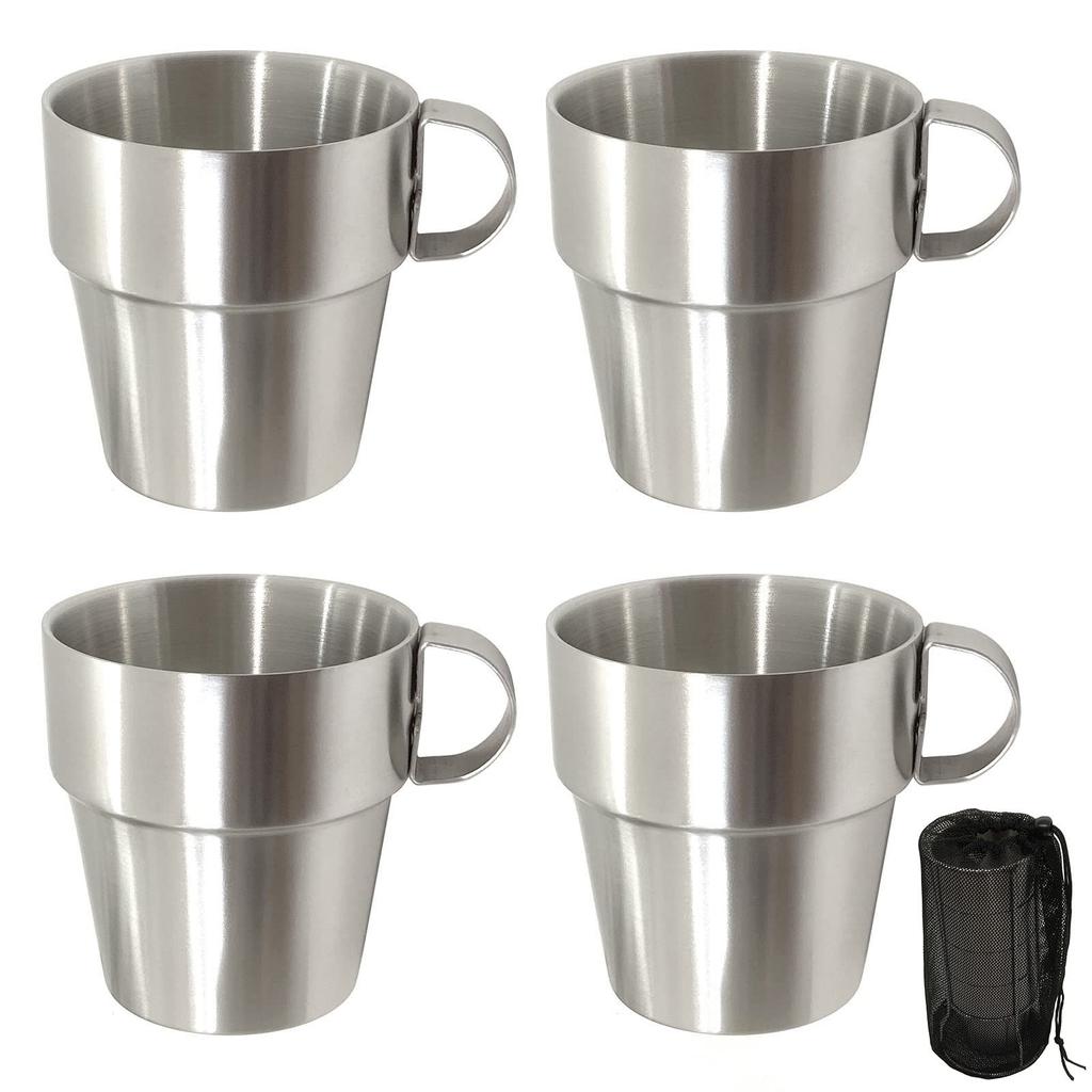 ✅Набор из 4 кружек из нержавеющей стали с простым дизайном и двухстенной конструкцией.