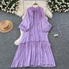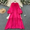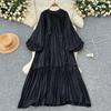 Винтажное однобортное платье с круглым вырезом на шнуровке, модное, с длинными рукавами, элегантное, свободное, с оборками, корейская женская одежда High Street