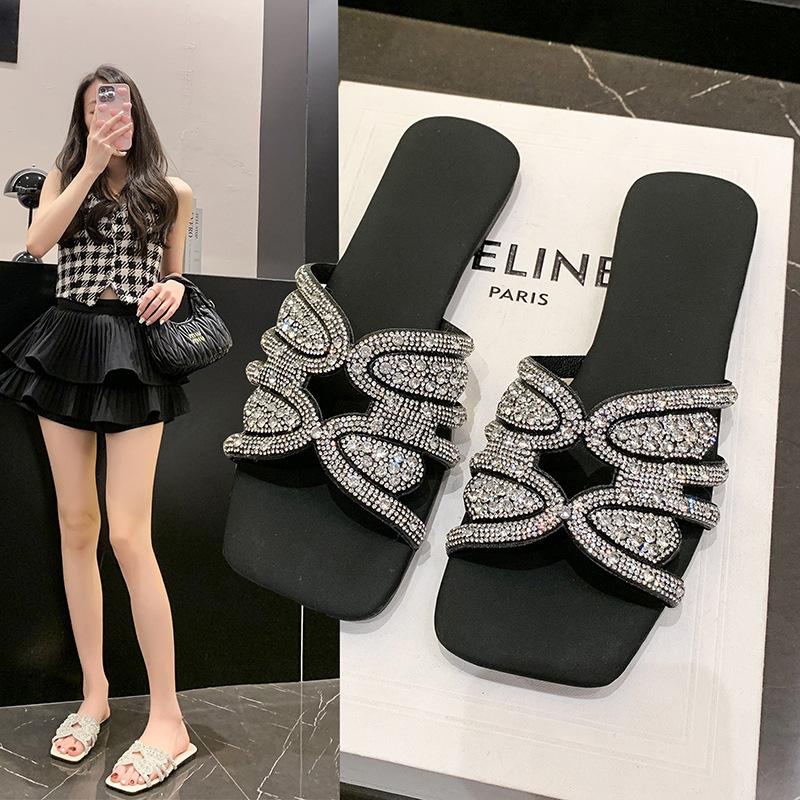 Новая Мода Темперамент Летняя Мода Все-сочетаемая Большой Размер Женская Обувь Стразы Шлепанцы Женская Летняя Одежда