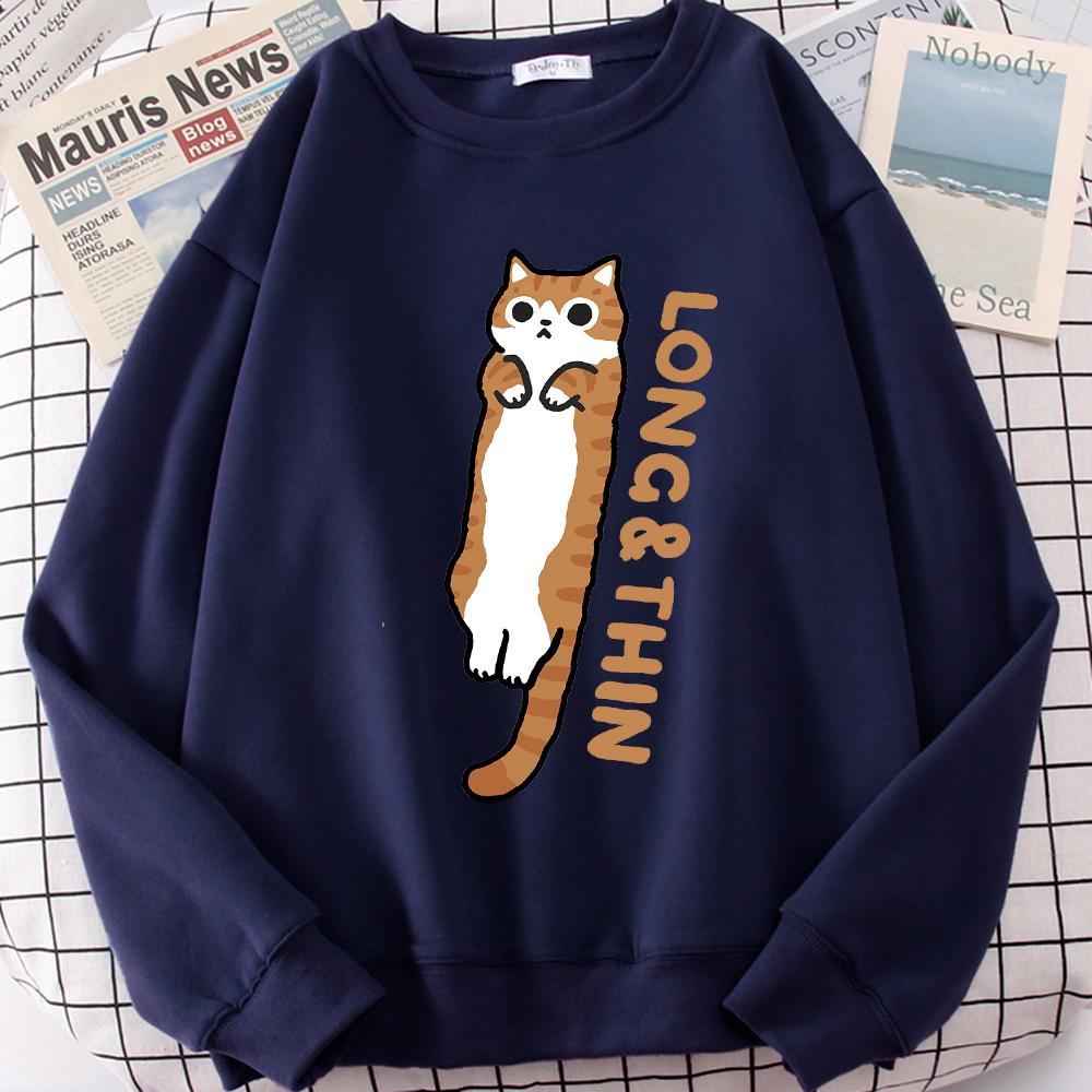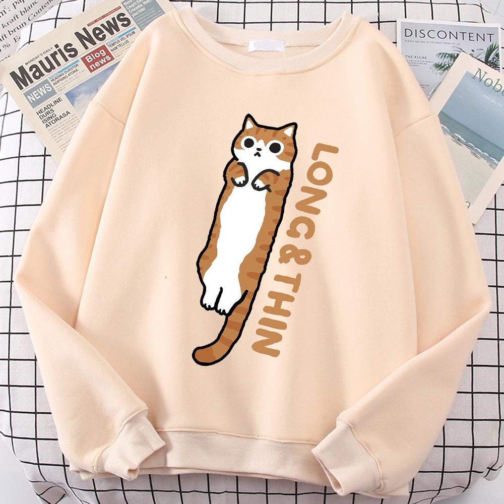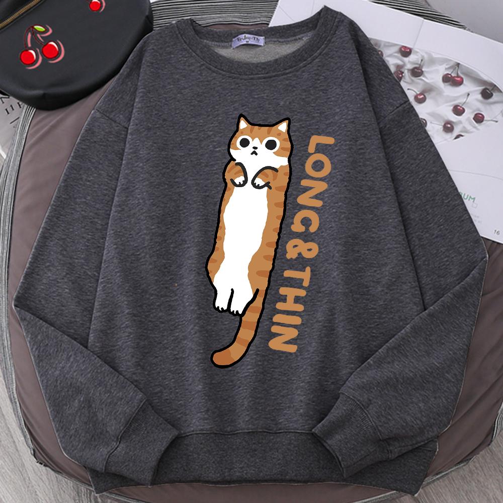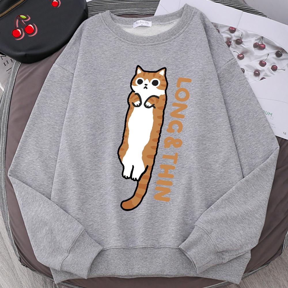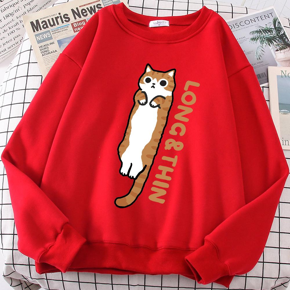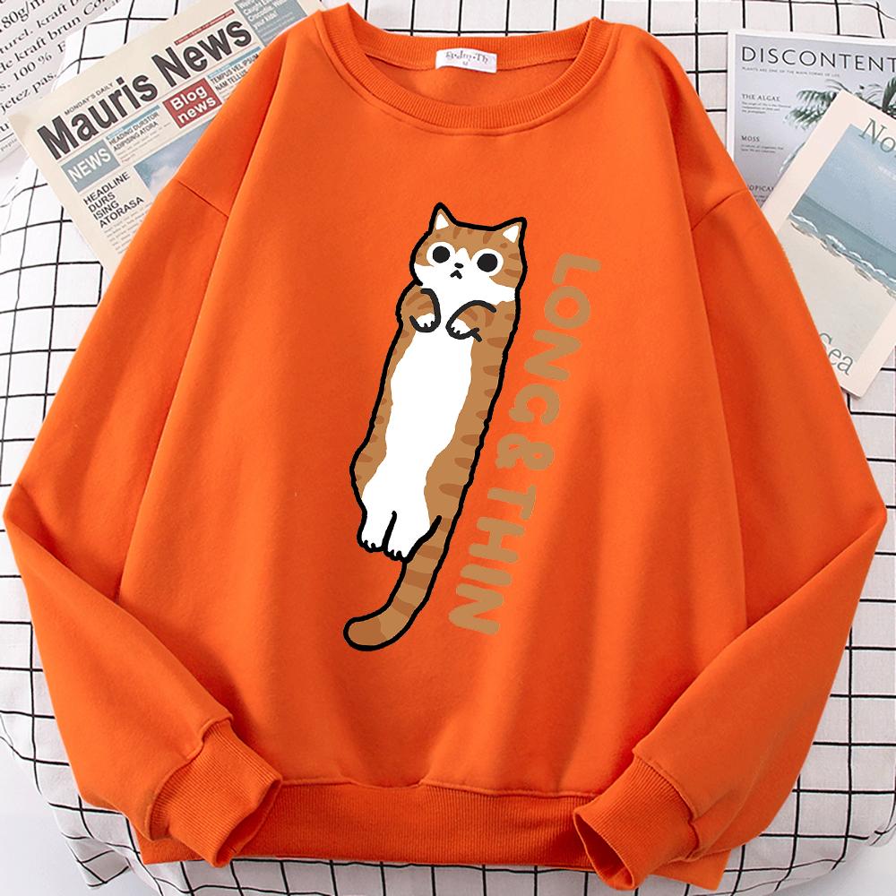 Веселая стройная оранжевая кошечка с милым принтом, толстовка с капюшоном для мужчин и женщин, свободная, удобная, с капюшоном с круглым вырезом, одежда