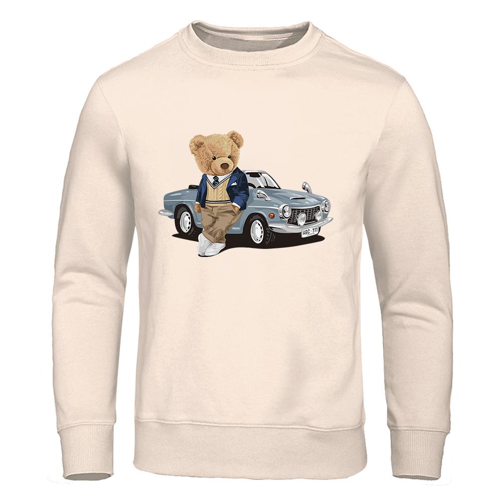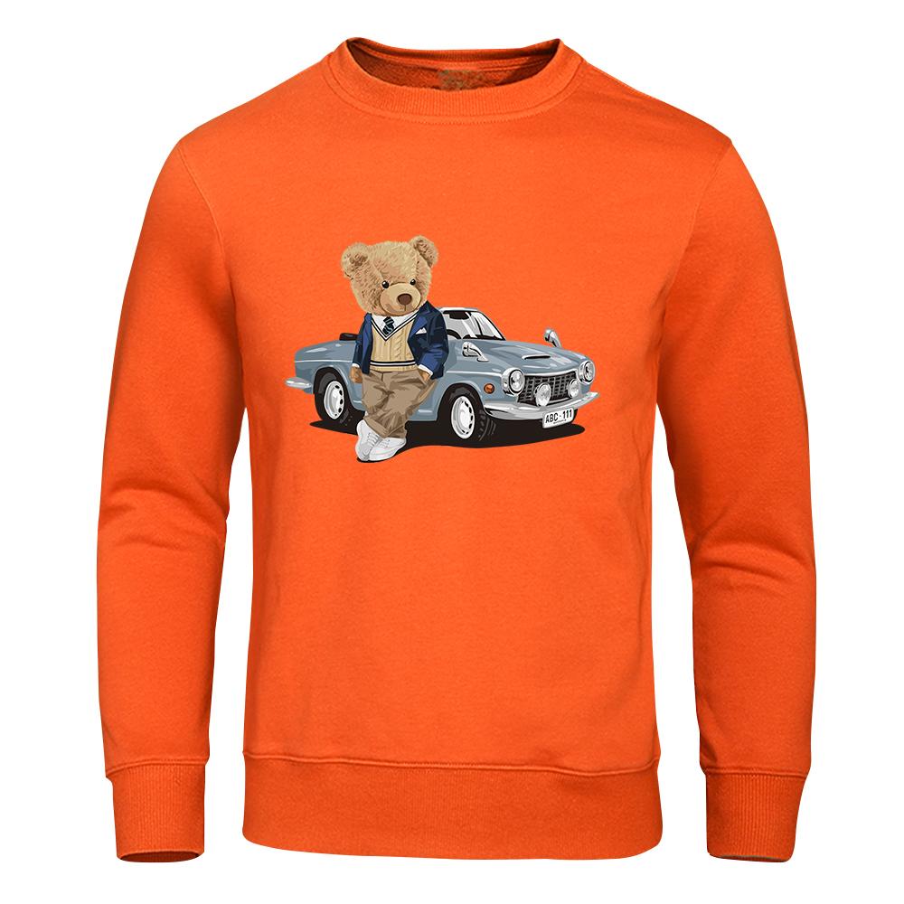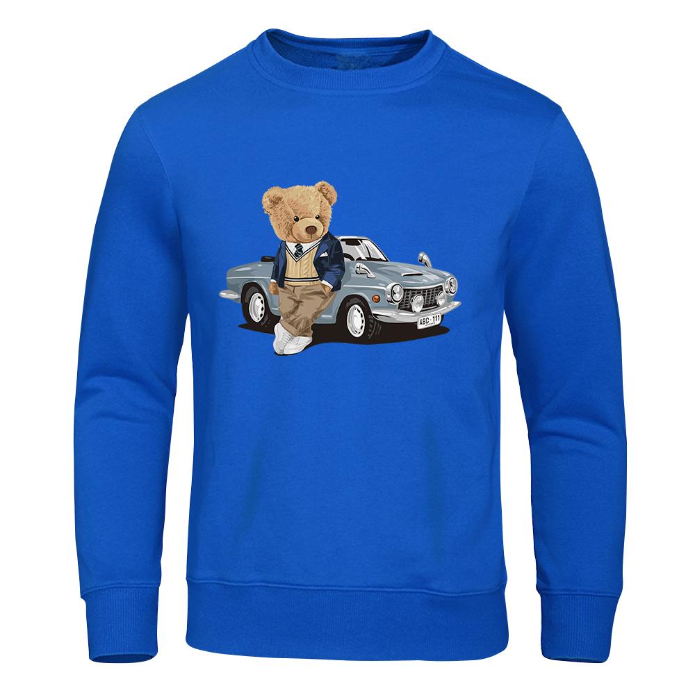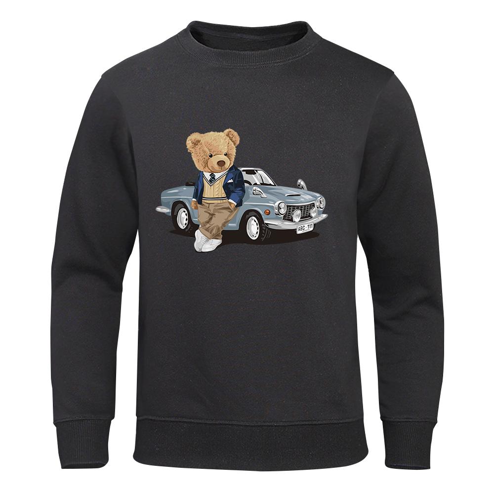 Толстовка с капюшоном Teddy Bear Beside The Car, мужская повседневная теплая флисовая толстовка, подходящая для осени, с капюшоном, модный женский спортивный костюм большого размера