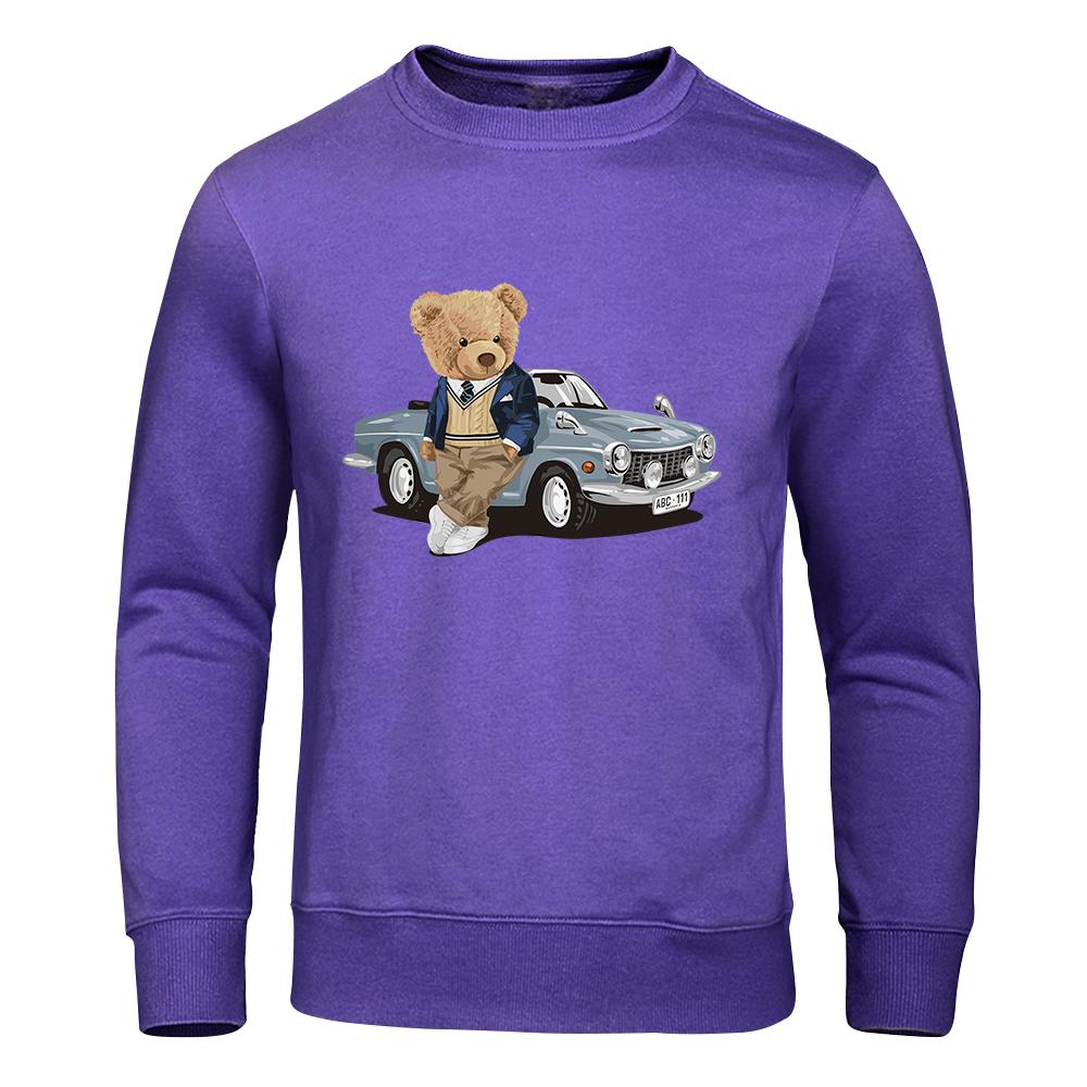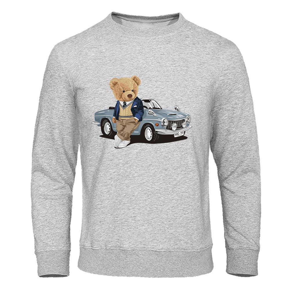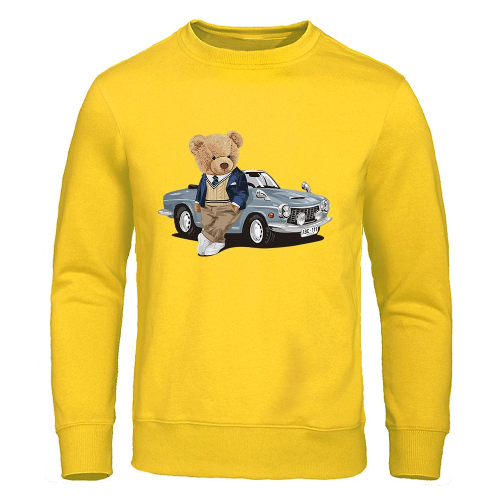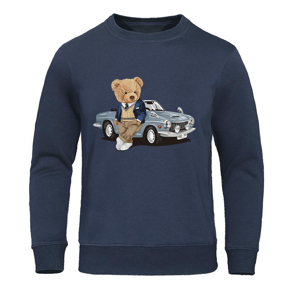 Толстовка с капюшоном Teddy Bear Beside The Car, мужская повседневная теплая флисовая толстовка, подходящая для осени, с капюшоном, модный женский спортивный костюм большого размера