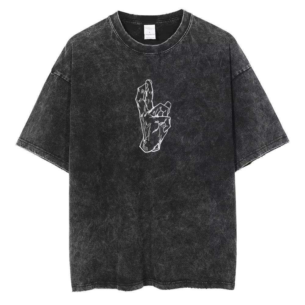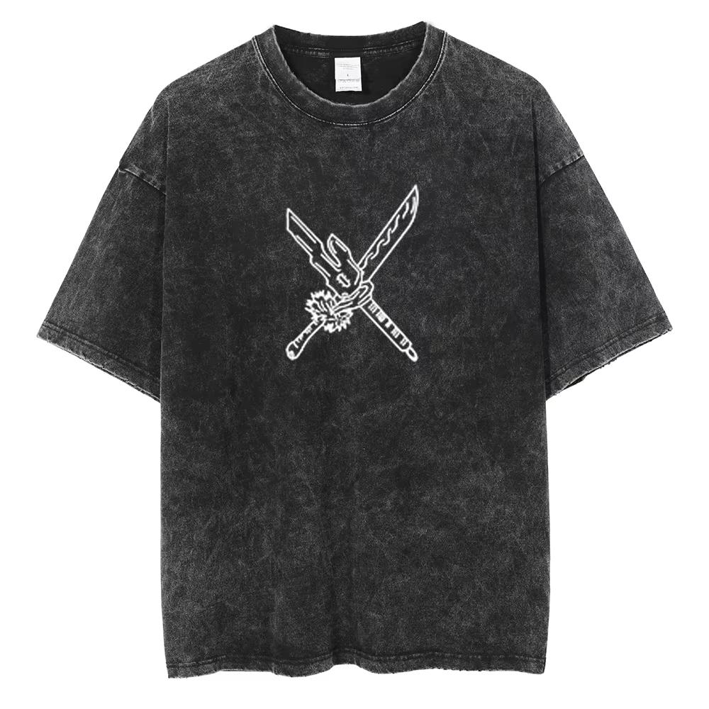 Футболка с принтом аниме в стиле Харадзюку для мужчин, уличная одежда, винтажная черная футболка, летняя хлопковая свободная стираная футболка с коротким рукавом, свободная одежда больших размеров