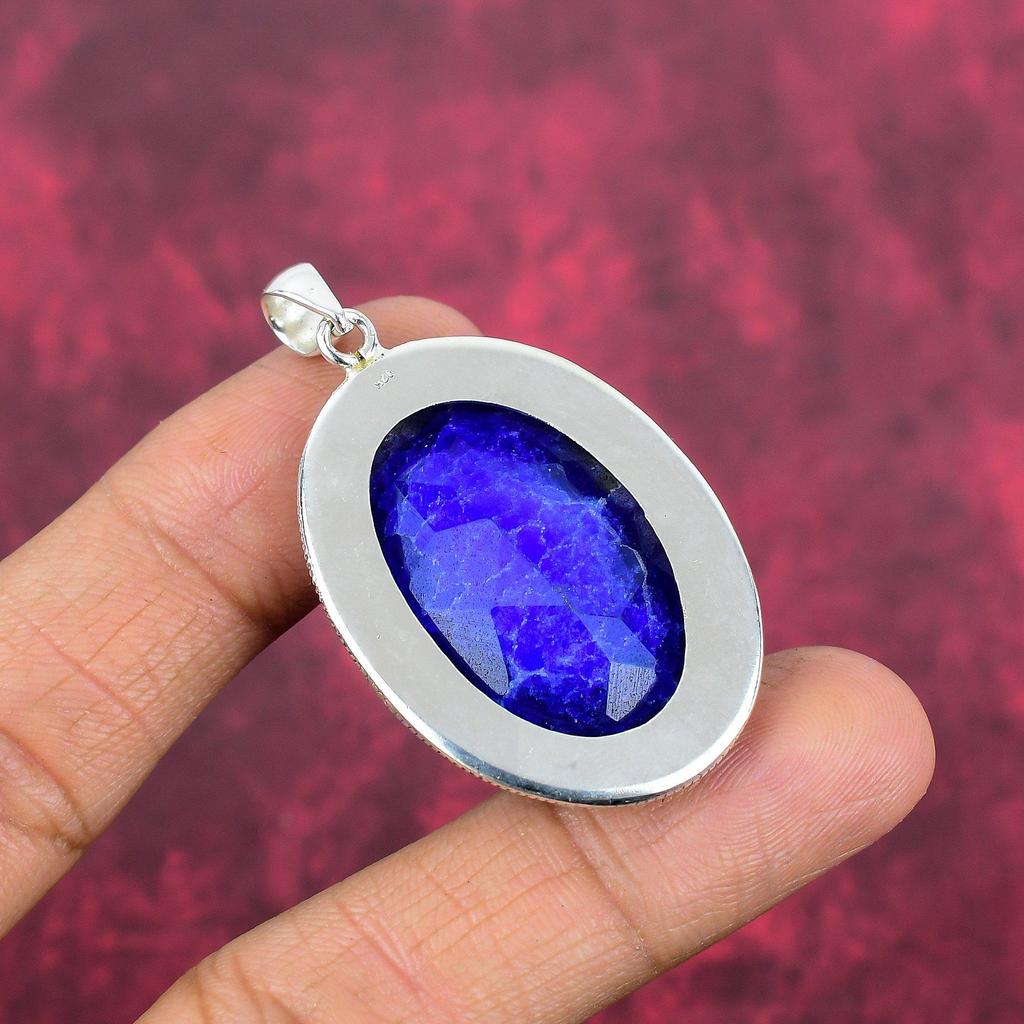 Подвеска с синим сапфиром, подвеска из драгоценного камня ручной работы, подвеска из стерлингового серебра 925 пробы, антикварные ювелирные изделия, для подарка на помолвку