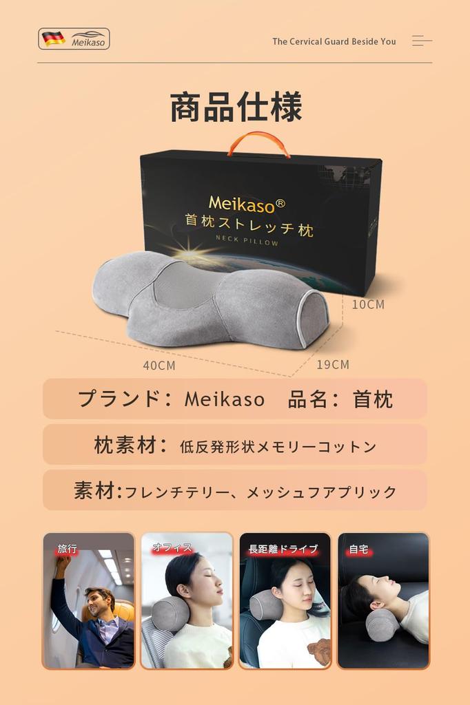 [Удобный и стильный растягиватель шеи Meikaso! ] Компания Meikaso разработала растяжку для шеи, которая соответствует современной моде и потребностям покупателей на основе совокупных данных о продажах и многолетних испытаний.. Импортируемый из Германии хлопок с эффектом памяти плотно прилегает к изгибам тела, не вызывает боли, как жесткие полиуретановые подушки для шеи, и содержит малоэластичную пену с эффектом памяти, которая бережно воздействует на шею.. Вес головы позволяет шее растягиваться естественным образом, позволяя вам растягиваться без напряжения.
