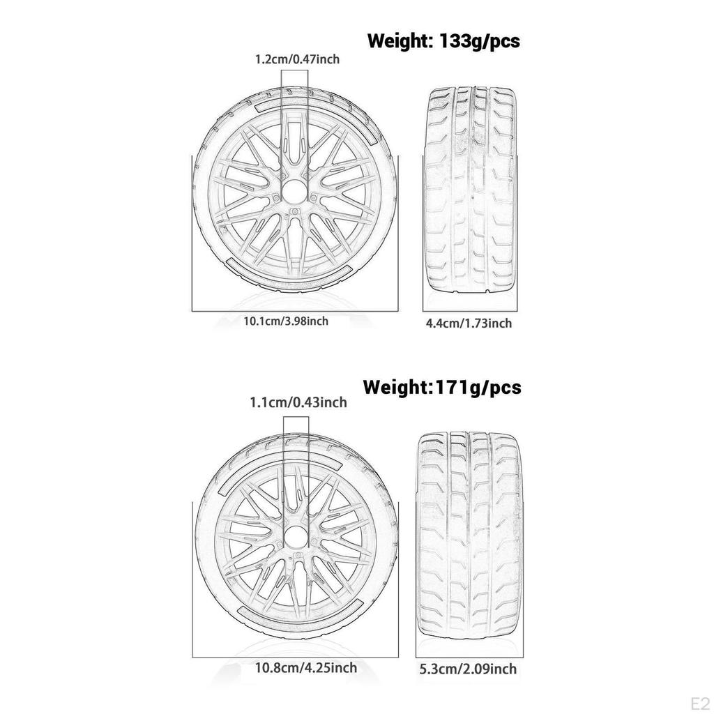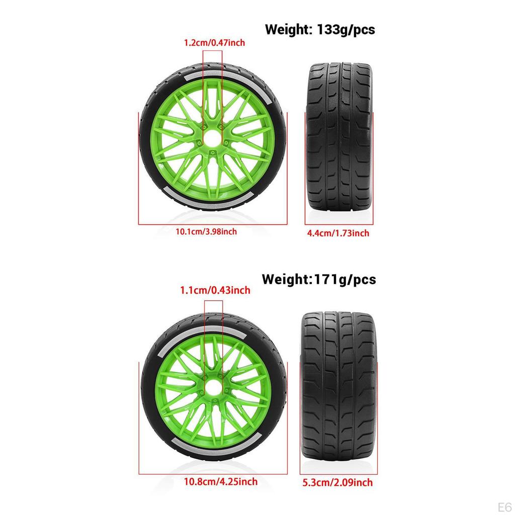 - 【Versatile Sizing】: These tires feature a diameter of 100/108mm and a width of 43/53mm, providing flexibility and adaptability to different race conditions. The wheel hub diameter is 80mm with a connector size of 17mm, ensuring compatibility with a range of models