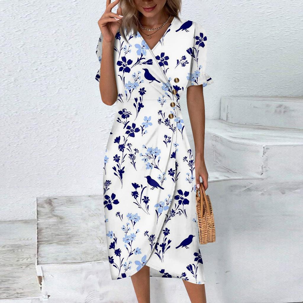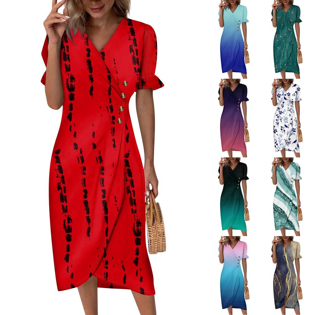 Характерная черта: Летние платья для женщин представлены ярким цветочным принтом, повседневным платьем с v-образным вырезом, платьем с короткими рукавами, летними свободными платьями с карманами для женщин, платьями-футболками, повседневным женским пляжным платьем.