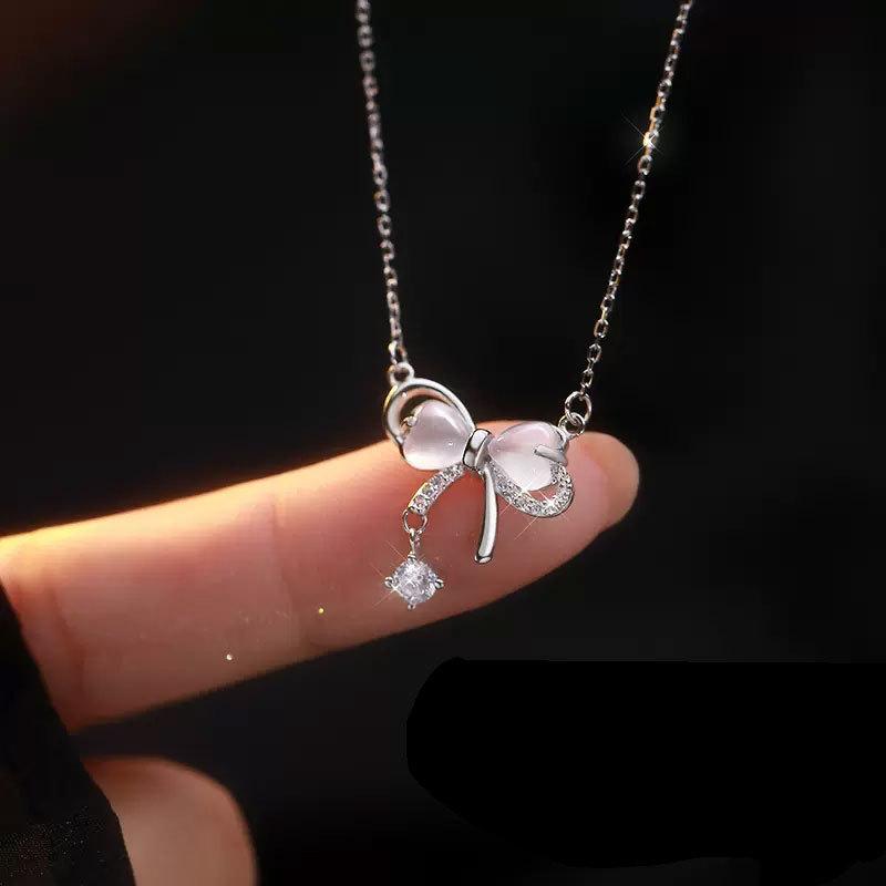 Ожерелье-бант для женщин, нишевая цепочка на ключицу в стиле легкой роскоши, ожерелье с камнем «кошачий глаз», на Новый год